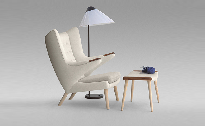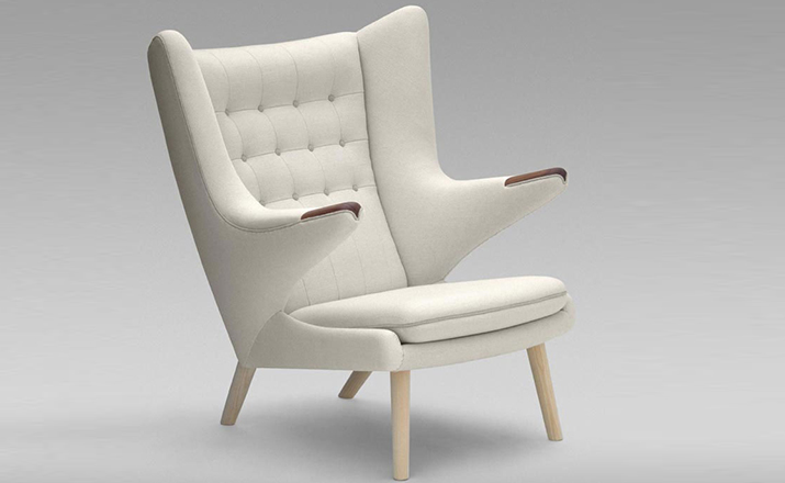 "熊椅(Papa Bear Chair)是Hans J.Wegner在1951年设计的时尚家具,又称为 ""Teddy Bear chair""泰迪熊椅。Hans J.Wegner设计的这款椅子是一款休闲躺椅,大气时尚,线条优美,稳健而优雅。 实木脚让人感觉非常有质感,高靠背设计符合人体的构造,放在书房或者是办公室,躺下来看看书或者是休息一会,亦或者感受一下自然的静谧,既低调内敛,又雍容舒适。 相比较其他一些躺椅的设计,熊椅的设计更加的注重稳重、传统、内敛的美,兼顾舒适和大气。