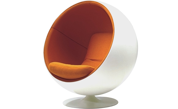 设计师艾洛·阿尼奥在 1963 年设计的,球椅结构简单,上边是用半球,下面是旋转的支撑脚,球椅(Ball Chair)球椅可以360度旋转。可以附加带喇叭MP3,香水味,彩光灯等功能,这种设计让消费者有眼前一亮的感觉,这设计也为家具厂商带来了一次巨大的商机,所以球椅(Ball Chair)也开始被大量的生产,它的诞生来家具设计提升了一个高度,让设计者重新审视了自己的设计观念。