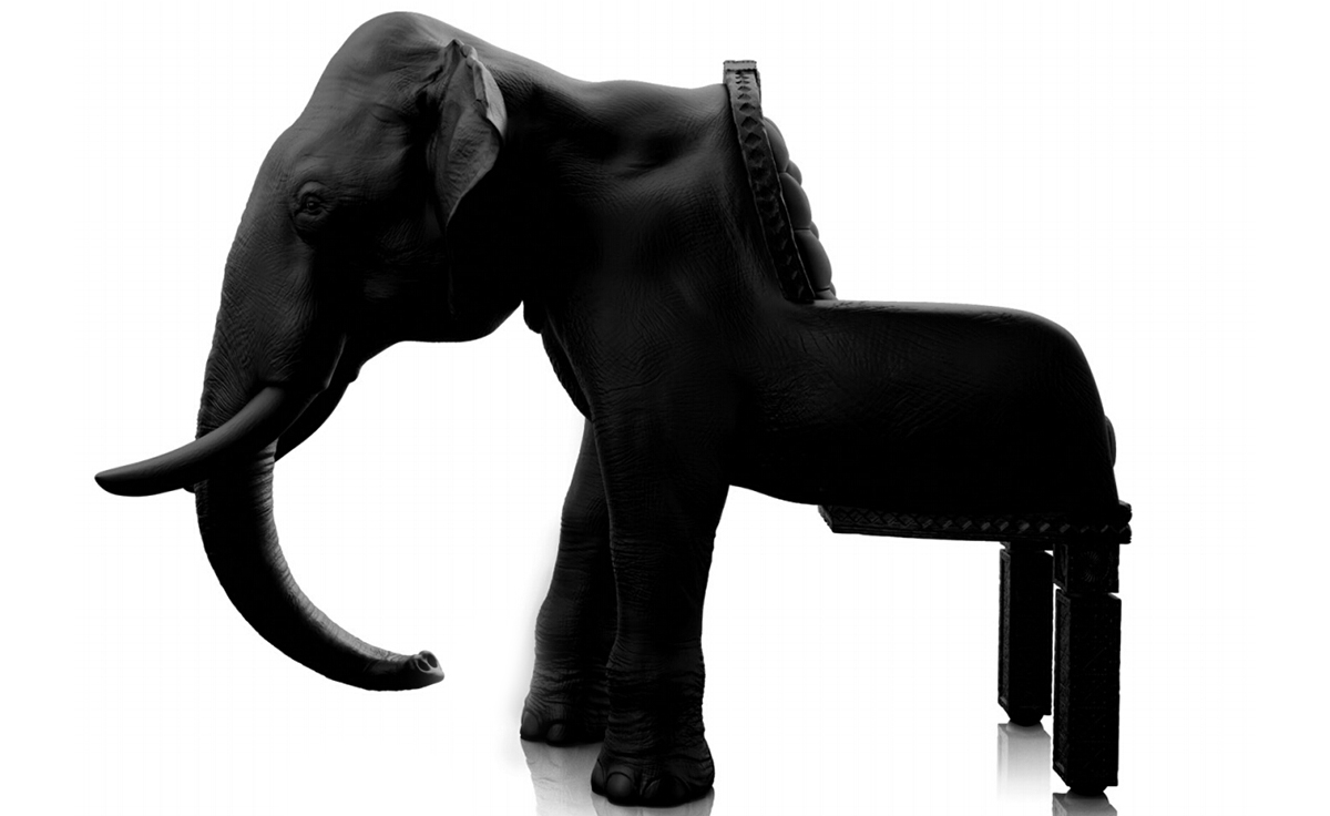 西班牙设计师 Maximo Riera 设计了一组包括章鱼、犀牛、海象、狮子等在内的 15 件动物造型座椅系列皮椅。这个系列的动物椅集合了不同的物种,从哺乳动物到爬行动物,甚至包括昆虫。每个设计都保留了动物的自然活力,同时又准确还原动物的外观特征。这些动物椅的初衷是一种尝试,希望以动物的栖息来反映和捕捉大自然的美,并向我们星球上的整个动物王国致敬。设计师除了表现动物的野性美,也在善意的提醒人们要维持生态的平衡,尤其对濒危物种多加关注,以实现人与自然的相互依赖和谐共存。Elephant Chair(大象椅)是他之前一个系列家具作品的延续。这一系列作品将家具和动物结合到一起,每件家具的主要部件都装饰有一种动物。大象椅(Elephant Chair),拥有钢制的骨架、泡沫塑料的血肉和黑色的皮肤(皮革),全重高达160公斤,不论是块头还是重量,还是那颗象头雕刻的精细程度,都能让人叹为观止。