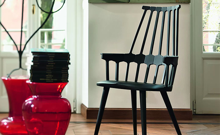 温莎风格椅被冠以乡村风格,但并非一成不变,在不同时期不同阶段又融入新的设计元素。Kartell的这款产品再一次享受重现经典的设计快乐,国际知名家居设计师Patricia Urquiola为温莎椅(Windsor Chair)打造了一个这款新的造型。回归十八世纪英格兰的辉煌时期“梳背”椅的特点,整个框架用亚光材质,靠背的7个分支结构朝着椅腰部位向下延伸,在一个加固六角形圆圈处与纤细的轴汇合,与椅座合为一体。聚碳酸酯材质的使用赋予COMBACK一种轻盈的质感和当代风格。浸透在黑色COMBACK梳背椅里的那一分淡定从容,能让人气定神闲,默默却又不留情面地将浮华虚荣隔在门外。因为不存在彩色光谱里,白色可以说并非真正色彩。纯白色Comback Chair梳背椅,唯美得让人难以抗拒。那种与世无争的清雅,好似刚刚落入凡尘的花瓣,昭示宁静与自然。这款Comback Chair 来自意大利的创新品牌Kartell,以发梳为灵感,回归18世纪英式风格,整齐对称的典雅扮相,表现出一份沉稳内敛的韵韵意涵。木质椅角的运用,让复古气息升华其中。配搭塑料椅身的现代风格特色,不愧为一份跨越历史的新时代作品。荣获2011年Wallpaper设计奖殊荣。