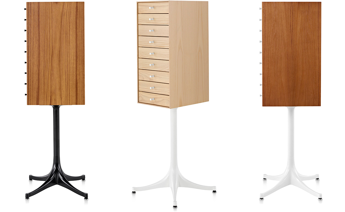 乔治·尼尔森(George Nelson)是美国极具影响力的建筑师、家具设计师和产品设计师,日本对George Nelson有着深远的影响。在他于1951年第一次到东京旅行,以及之后在那里的十几年,George Nelson迷上了日本的所有东西。这种影响最明显的的他于1952年设计的迷你箱。迷你箱的神奇处是可用来存放各种物品,是一个很多小抽屉小储物柜,方便您分类摆放各种生活物品。尼尔森设计的迷你箱最让人惊奇的是它几乎可以摆放在任何房间,无论是卧室,办公室,客厅等等任何您需要的地方,美观且不失和谐。每个抽屉都是木工们细心的安装设计,以保证高品质。抽屉采用胡桃或樱桃木皮贴面,基材为环保高密度板环保油漆喷涂、铸铝烤漆可调节脚架(4星级铝底座)、或玻璃钢一体成型脚架,抽屉贴心的配置有金属旋钮,方便打开与关上。
