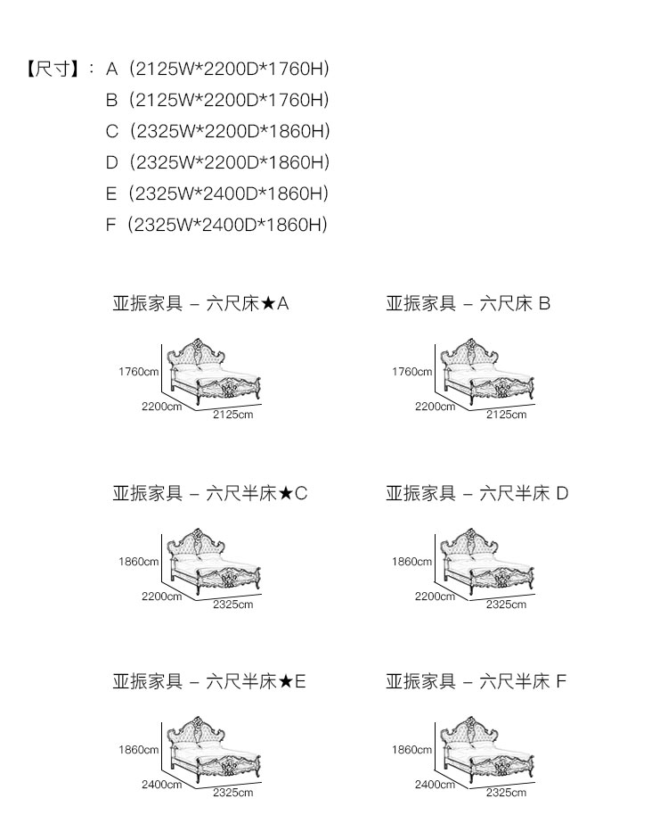 亚振家具 - 六尺床 产品尺寸/示意图