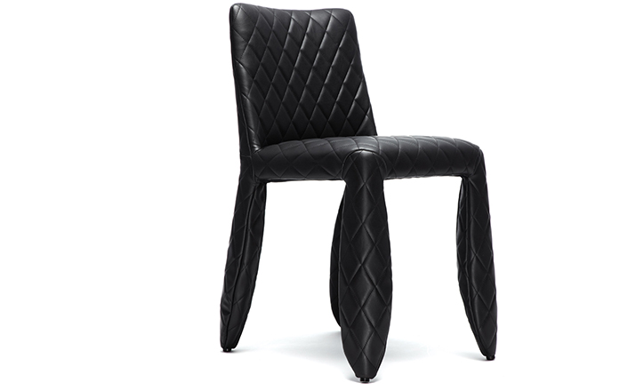 "A soft, puffy and stylish chair with an optional monster face embroidered on the backrest.The monster is a symbol of the eternal battle between opposite forces that take place in life and can be easily recognized inside ourselves,if we have the courage to open our eyes.Scary? Not at all! You forget about the monster once you sit down and enjoy the chair's comfort and softness.Marcel Wanders grew up in Boxtel, the Netherlands and graduated cum laude from the School of the Arts Arnhem in 1988.His fame started with the iconic Knotted Chair in 1996.He is now designing for the biggest European contemporary design manufacturers including Moooi of which he is also art director and co-owner.He works on architectural,interior design and consumer home appliances.His designs have been selected for the most important design collections and exhibitions around the world.Monster chair is offered with a synthetic leather upholstery in black.The chairs can be ordered with or without monster face and with or without armrests.The monster embroidery is identical in both versions."