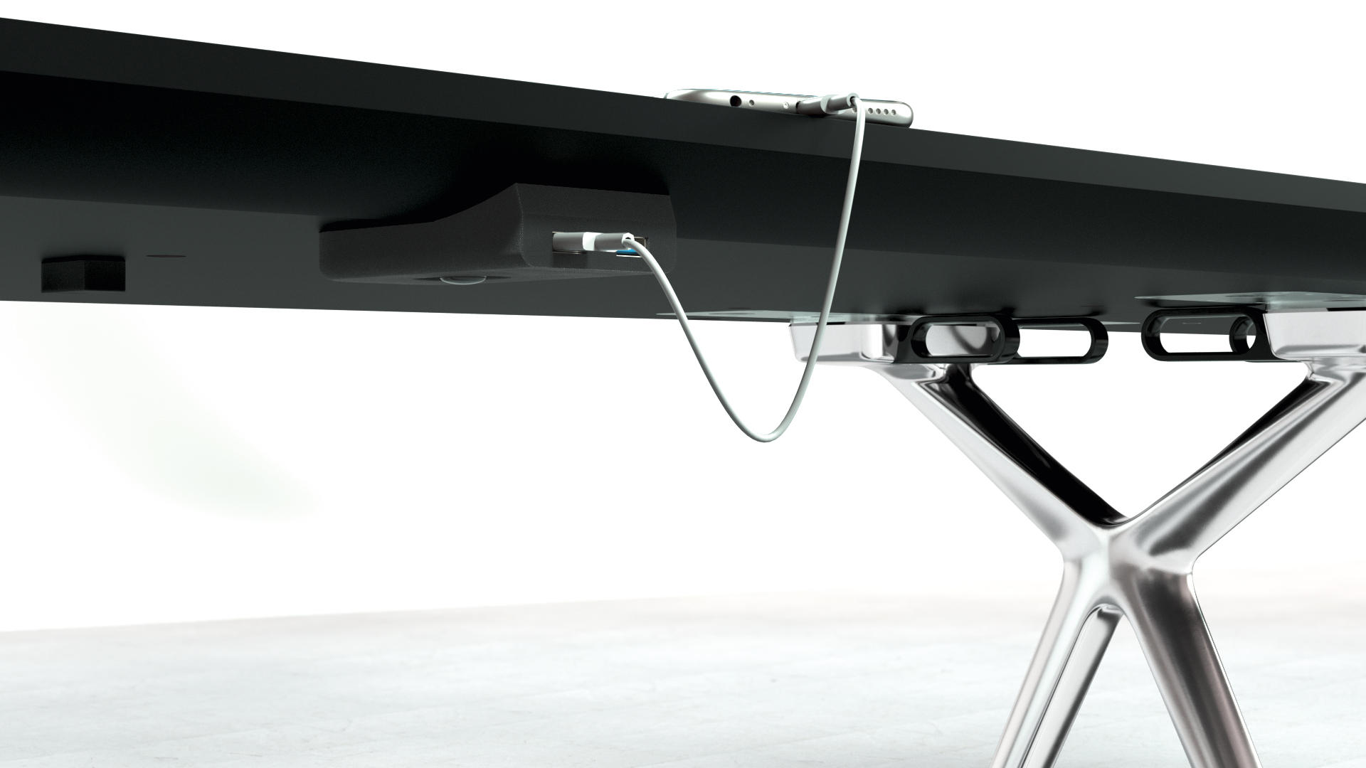 这款Conference-X最大的亮点就是:桌子腿是可以将两个桌面一起快速而轻松地结合在一起,而不需要借助任何工具。而这个专利技术的的连接关键是:桌子腿顶部处在固定锁,桌底有锁扣,以此保证绝对安全和稳定。这也很好的解决了会议台的多样性:从个人的工作桌到成排的会议桌,桌子形状、大小、都可以通过脚架来进行拼接.