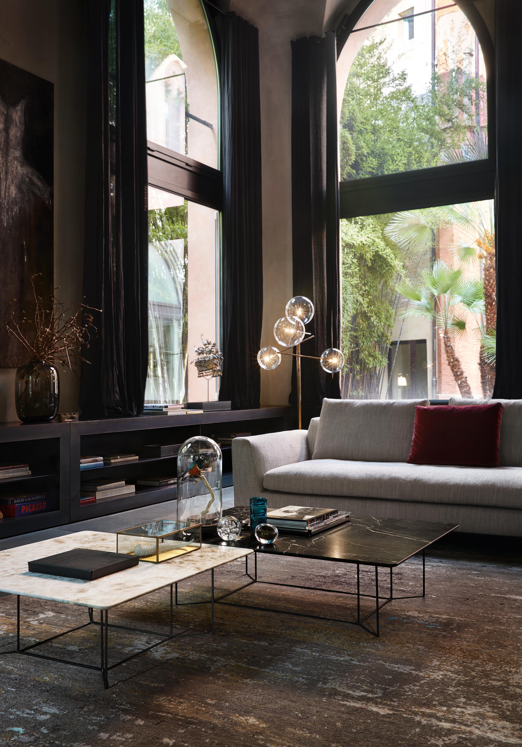 大理石代表着力量和稳重性。就像其他任何材料一样,OKI茶几把这种由元素力量创造的美丽带入了家。大块的天然大理石似乎漂浮在精致的框架之上。有的像交叉着的图案,像树枝一样错落精美。或者像一副抽象的白线画,一个禁止的作品,同时保留着优雅和强大。
