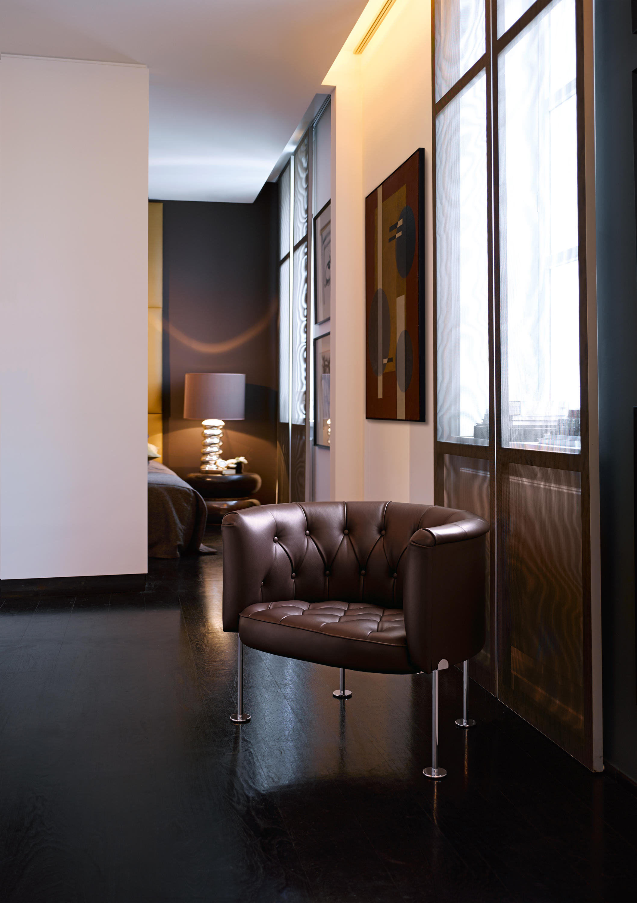 作为瑞士设计行收藏的一部分,Walter Knoll重新发行这款于1962年设计的经典的历史家具。与所有的切斯特菲尔德家具一样,独特的菱形图案结构的靠背和座位。传统的纽扣装饰服饰技术确保了这一点。一种巧妙地装饰体验标志。这是对包豪斯运动的致敬,反映在它精致的腿上。