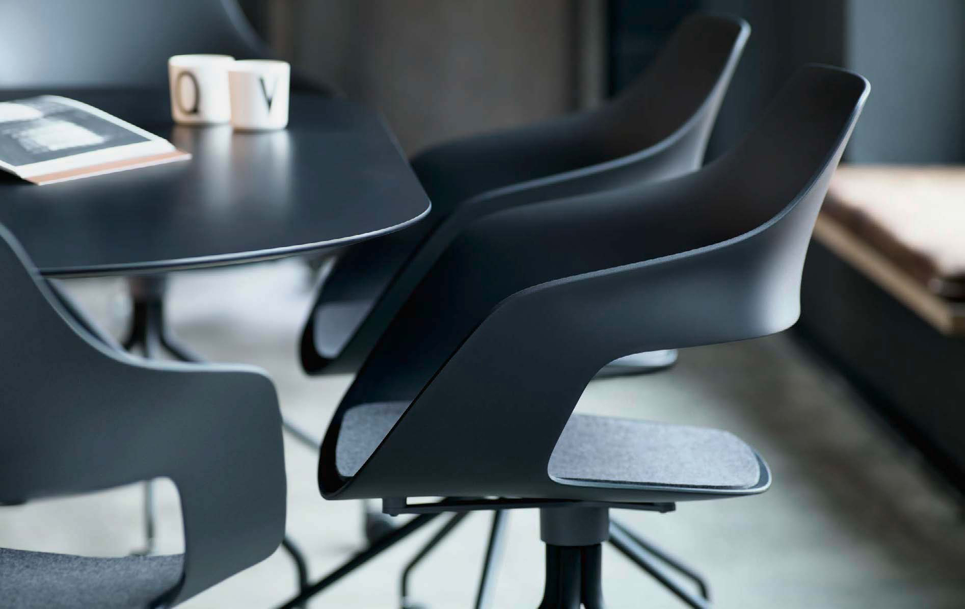 对于Wilkhahn来说,设计师马库斯Jehs和jurgen Laub已经设计出了一张椅子和桌子,这是一个完美的组合。它叫做Occo。Occo结合了巨大的通用性和大量的设计选项,设计语言清晰且可立即识别。背部和两侧的凹处的特殊形状允许椅子堆叠(当一个镀铬的、四腿的金属框架被选中时),同时也提供了高超的坐舒适性。座椅本身是非常坚硬的,但由于它的形状和不同的材料的不同,它的背部非常灵活。