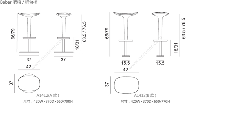 Babar 吧椅/吧台椅 系列尺寸/示意图