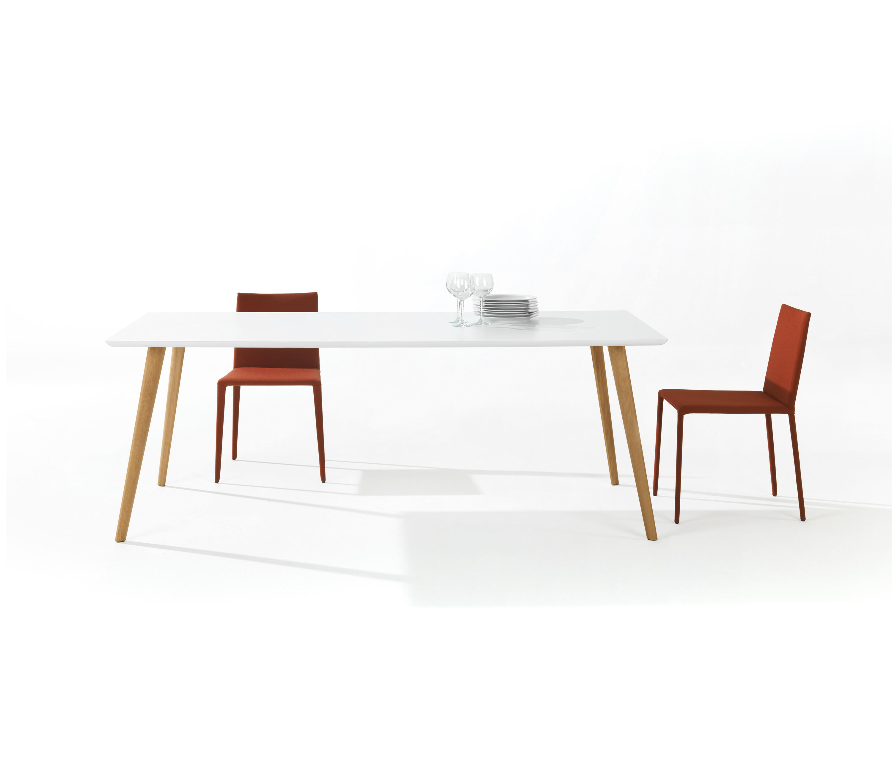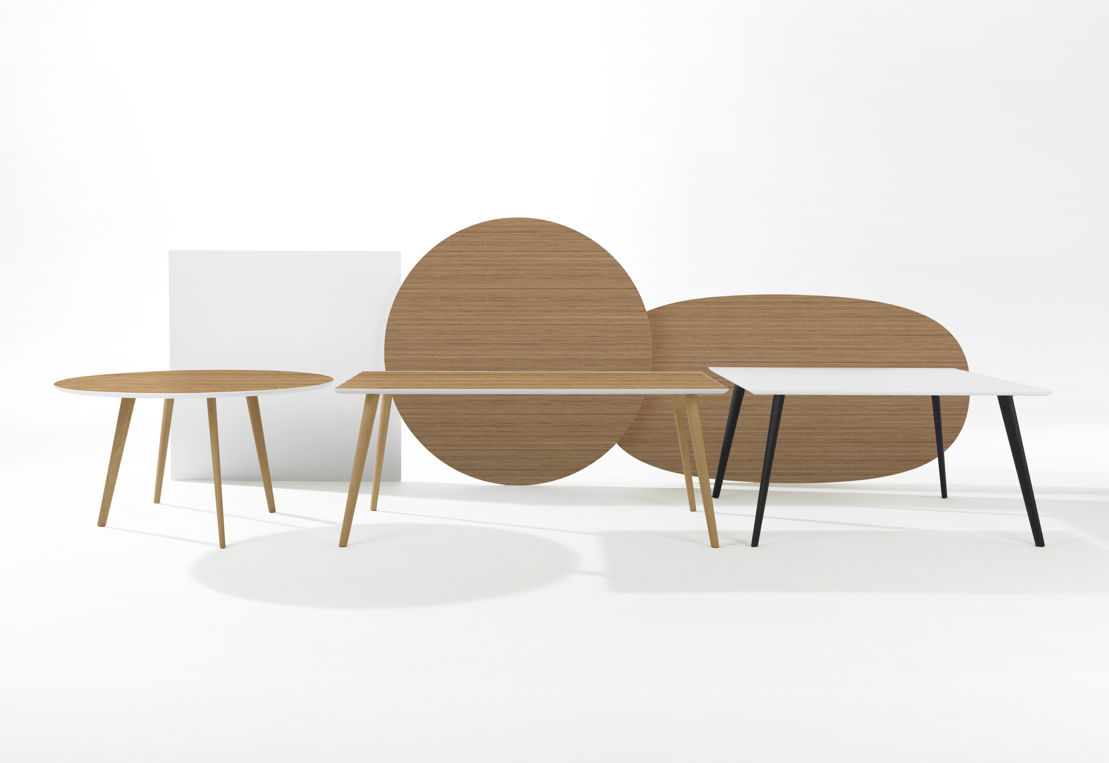 Gher是一个时尚,简单的桌子系统,实木腿,温暖,自然的感觉。 底座有四种不同的木质颜色可供选择,可与各种尺寸和形状的顶部组合,为家居或合约用途营造时尚,多功能的外观。 Gher收集台面积为74厘米 - 29 1/8英寸高,有圆形,椭圆形,长方形或方形顶部。坚固的天然橡木腿有五种颜色可供选择:白色,漂白橡木,天然橡木,wengé和柚木。 白色漆面MDF上衣可与所有腿部饰面相结合。