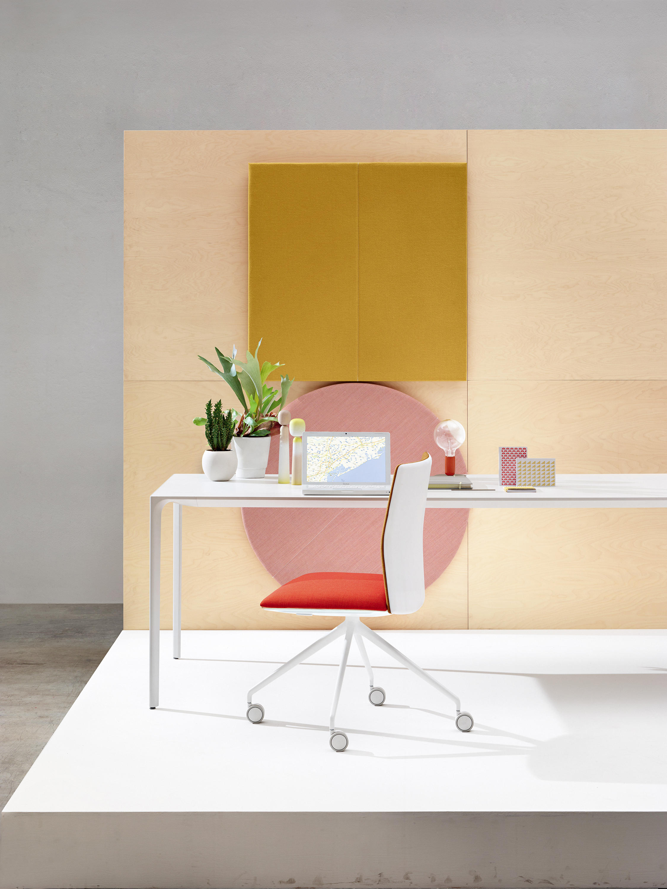 推出Kinesit,Arper的第一个办公椅,百分之百符合法规要求。椅子和椅背设计轻巧,设计简约,可完全调节,使其符合各种体型,即使在耗时较长的项目中也能获得最佳舒适度。椅子上有一个隐藏在座椅下方的内置机构,可提供同步运动和座椅高度指令。隐形可调节腰部支撑隐藏在靠背的薄框内,提供额外的灵活性和舒适性。 Kinesit可通过Arper目录中的所有面料系列进行定制。