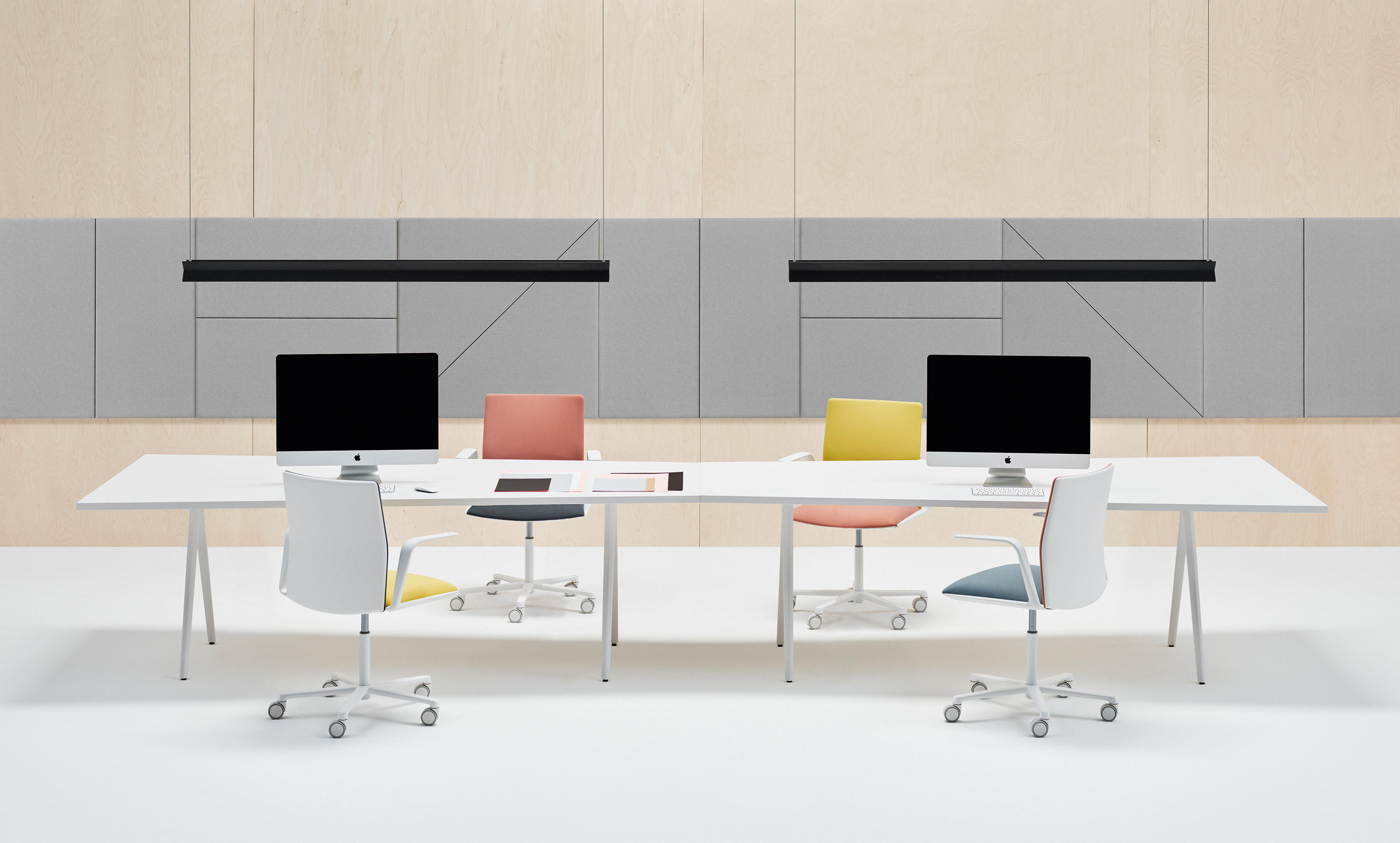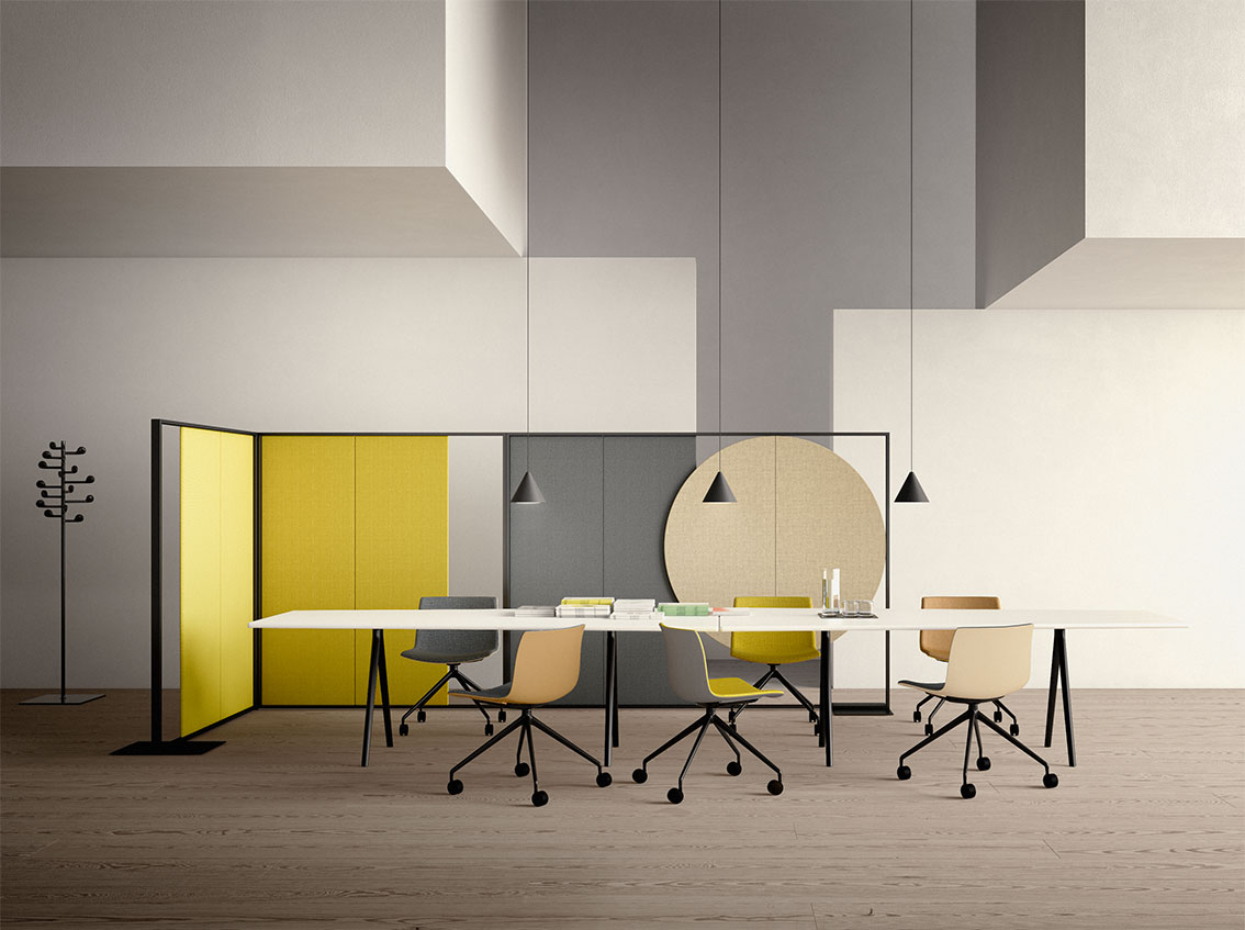 Meety系统可广泛定制,具有桌面形状选项,以及从层压MDF到FENIXNTM®,从木材到玻璃的各种材料。圆形(直径120厘米),正方形(120X120厘米)和矩形形状(从70X140厘米开始)被设想用于大型座椅环境,而柔软和流动的肥皂形状具有独特的存在感和吸引力。创建梯形桌面形状是为了响应协作工作环境,并且可以组合成不同的配置以在工作场所创建私人空间或开放性。