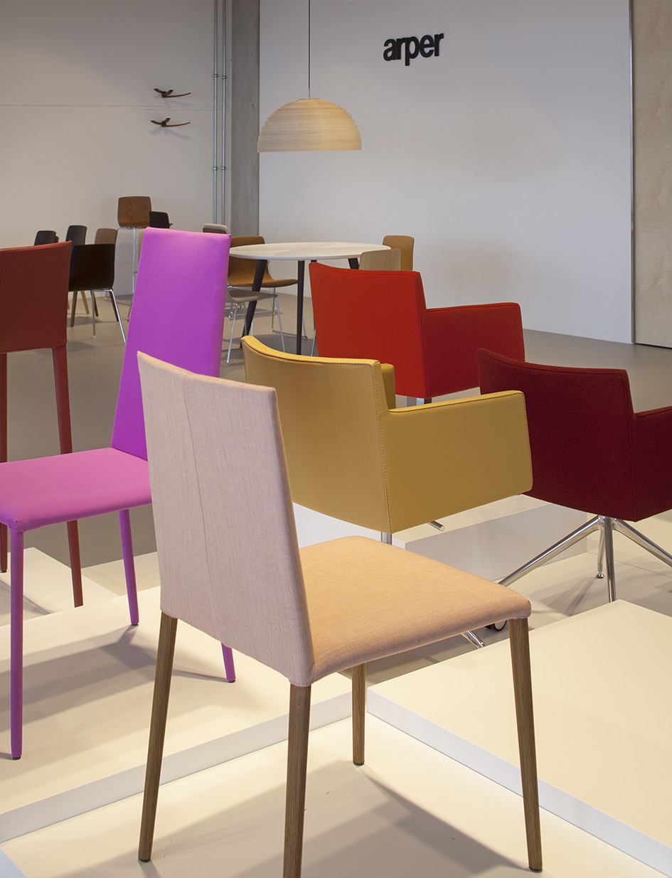 Norma有椅背版本,有三个后背高度,凳子有硬皮,织物或皮革内饰盖。涂漆,镀铬和贴面金属支脚延长了软垫椅子和凳子版本的耐用性,以供合同使用。还提供特殊的可堆叠版本,包括室内装潢和中高靠背。