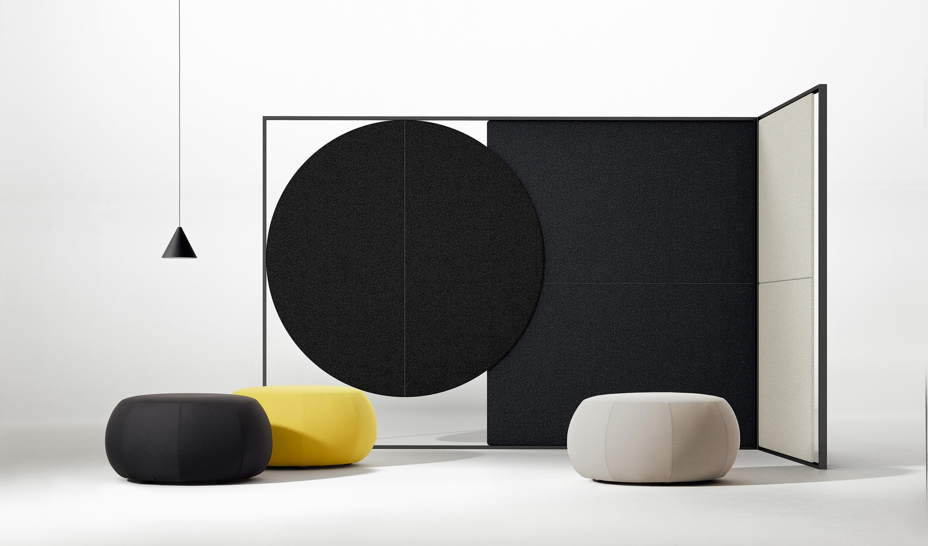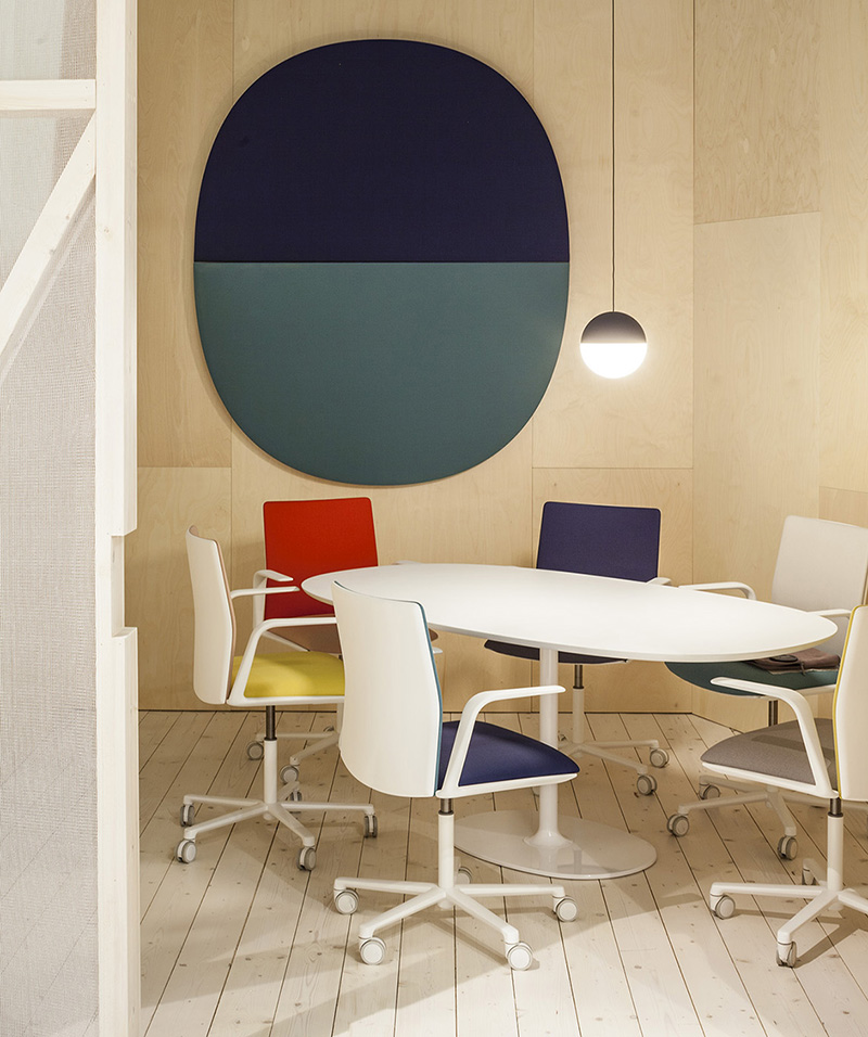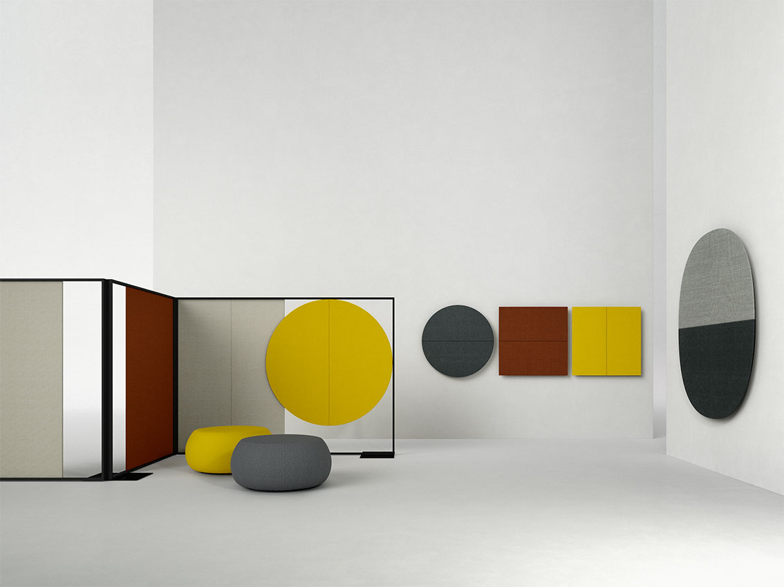 Parentesit是一个装饰模块墙板的集合,为当代共享空间提供舒适。粗体的图形形式有三种形状——圆形、正方形或椭圆形——可以通过添加扬声器或环境光进一步定制,以创建既实用又现代的视觉元素。该系列现在由独立版本补充,这是一个模块化的独立系统,用于在共享的工作空间或协作环境中进行集中注意力或安静对话。