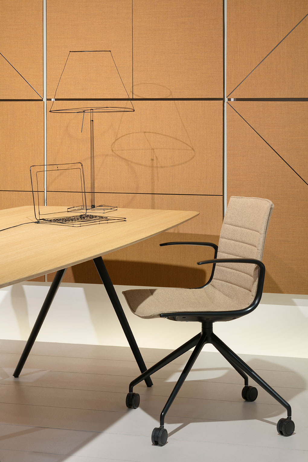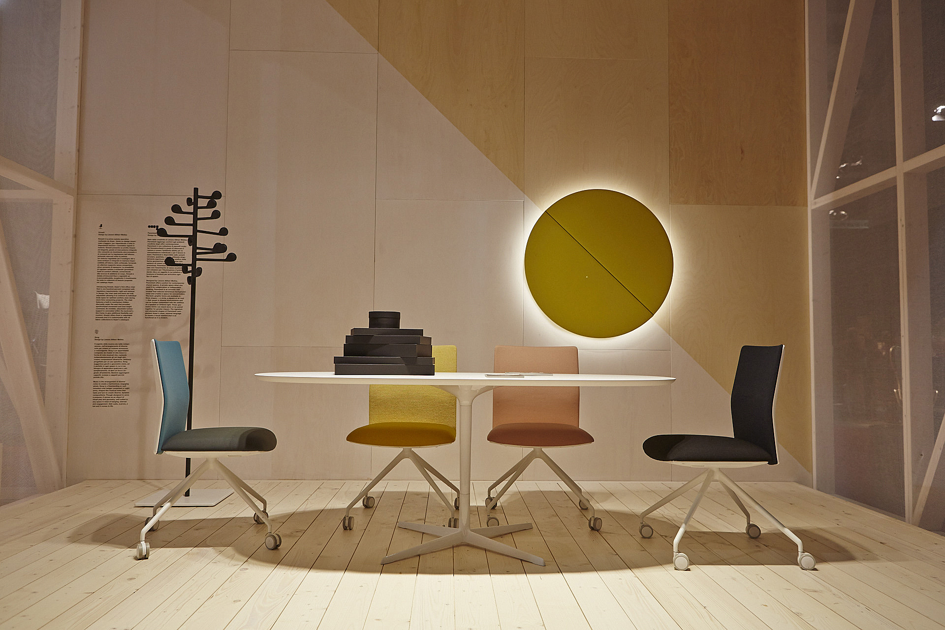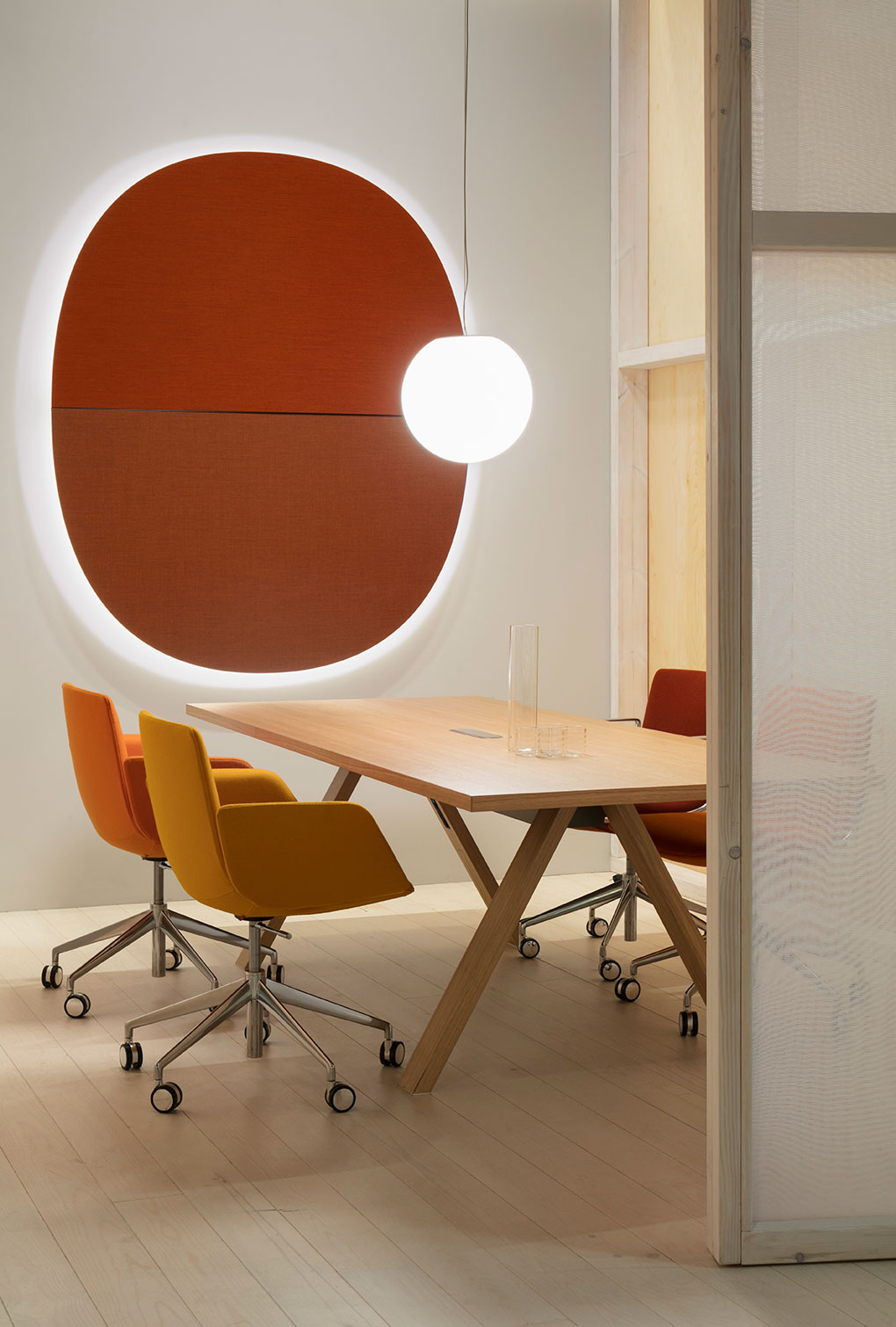 Parentesit是一个装饰模块墙板的集合,为当代共享空间提供舒适。粗体的图形形式有三种形状——圆形、正方形或椭圆形——可以通过添加扬声器或环境光进一步定制,以创建既实用又现代的视觉元素。该系列现在由独立版本补充,这是一个模块化的独立系统,用于在共享的工作空间或协作环境中进行集中注意力或安静对话。