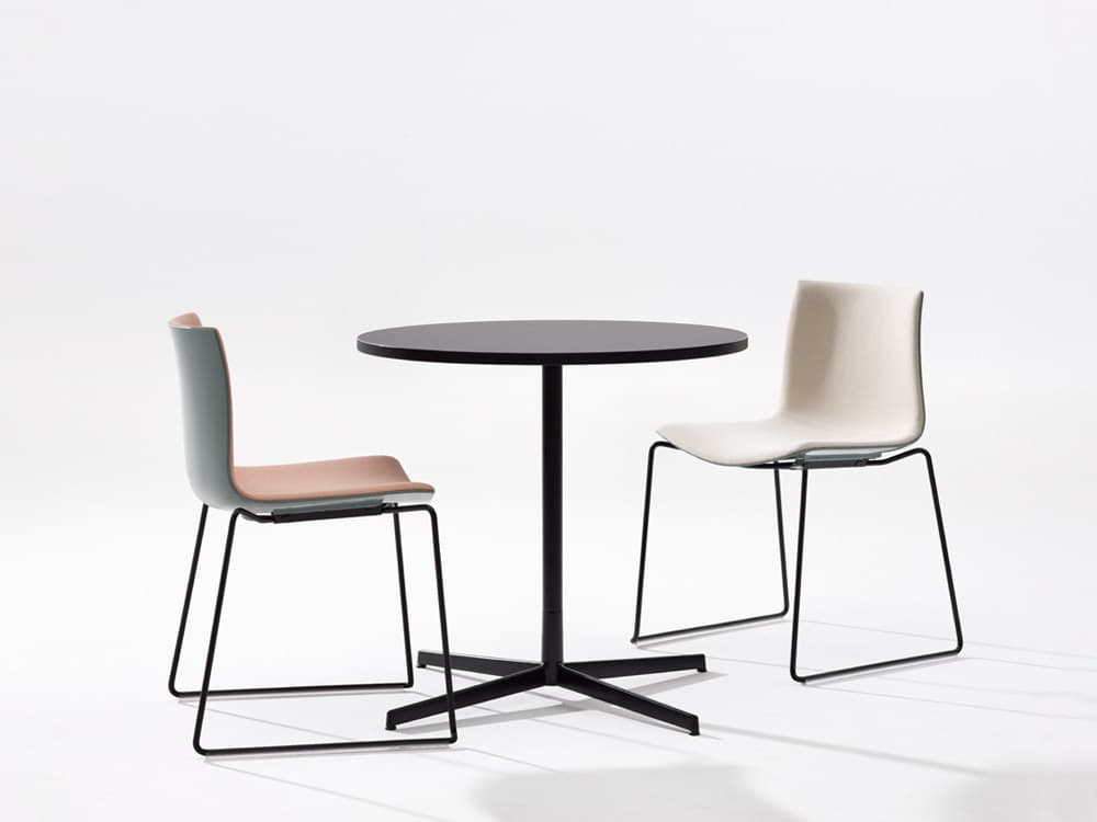 Wim加入Arper作为一系列表格,旨在完成Arper座位选项的句子。 耐用的材料,如铝,高压层压板和木材,形成坚固的结构,适合的形状有圆形(从Ø60厘米开始),方形(从60 X 60厘米开始)或矩形(从70X140厘米开始)。 铝质十字架底座支撑轮廓的完整性,创造出一种形式,可以在餐馆或酒吧等团体环境中重复使用,或隔离用于家居,功能和美感的结合至关重要。