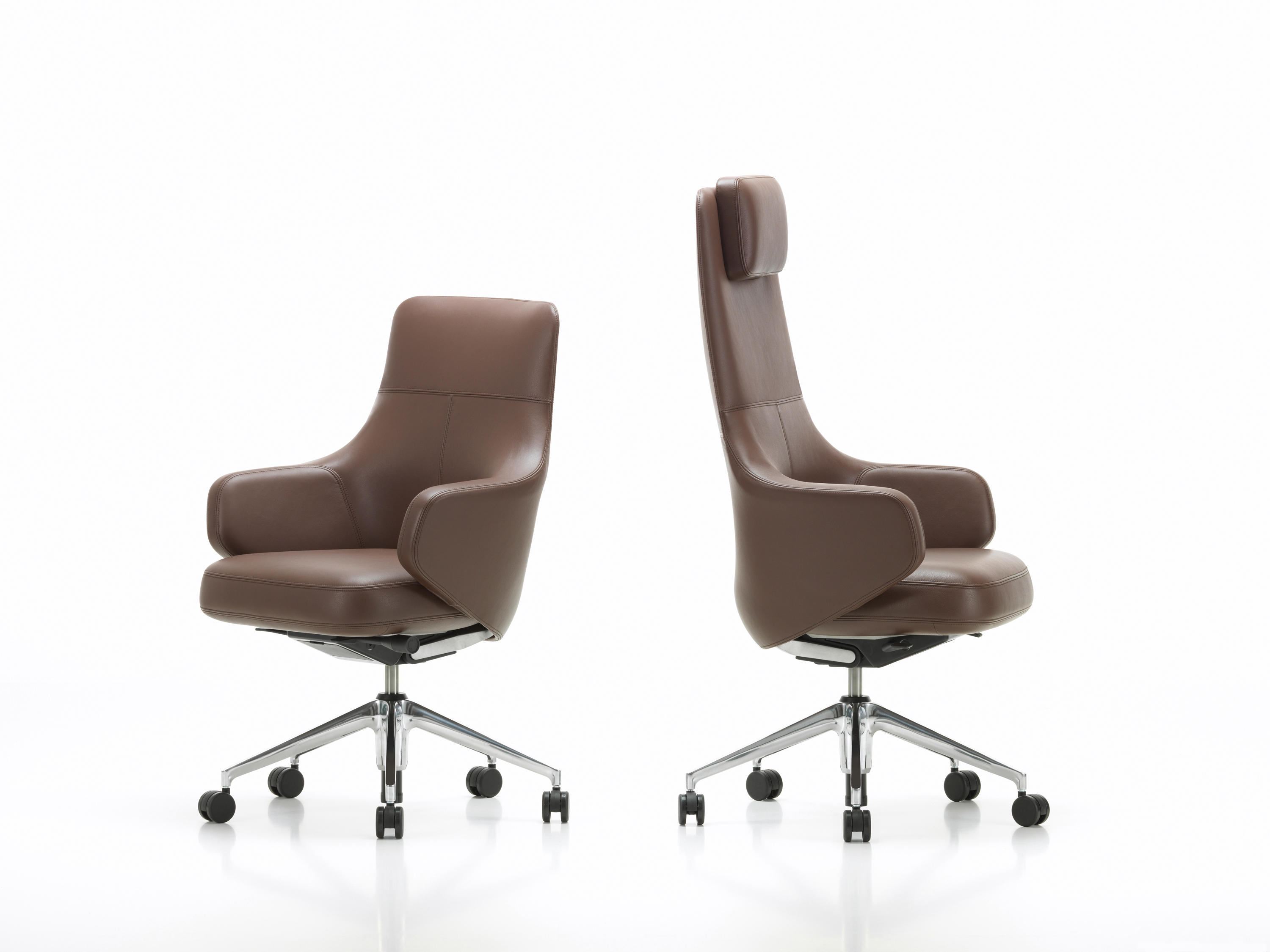 Grand Executive椅子有不同的版本:Grand Executive Lowback以其靠背为特色,Grand Executive Conference为访客座位和会议座位提供了先进的解决方案。与Grand Repos和Repos一起,它们形成了一系列椅子,为办公室和会议室以及大厅,等候区和接待区提供统一的外观。