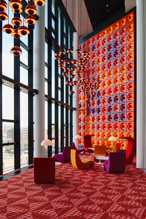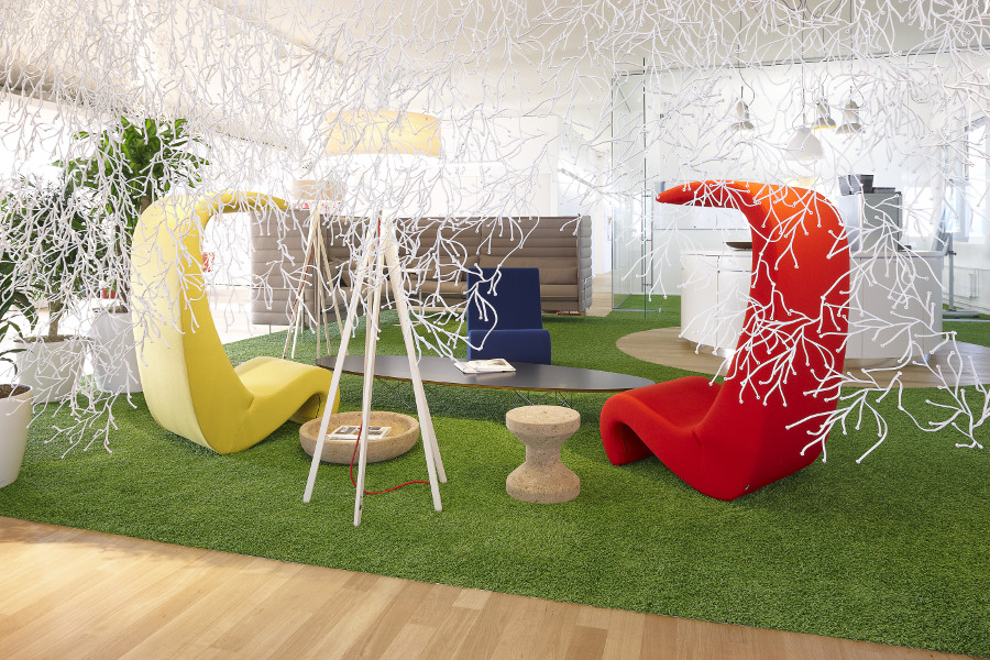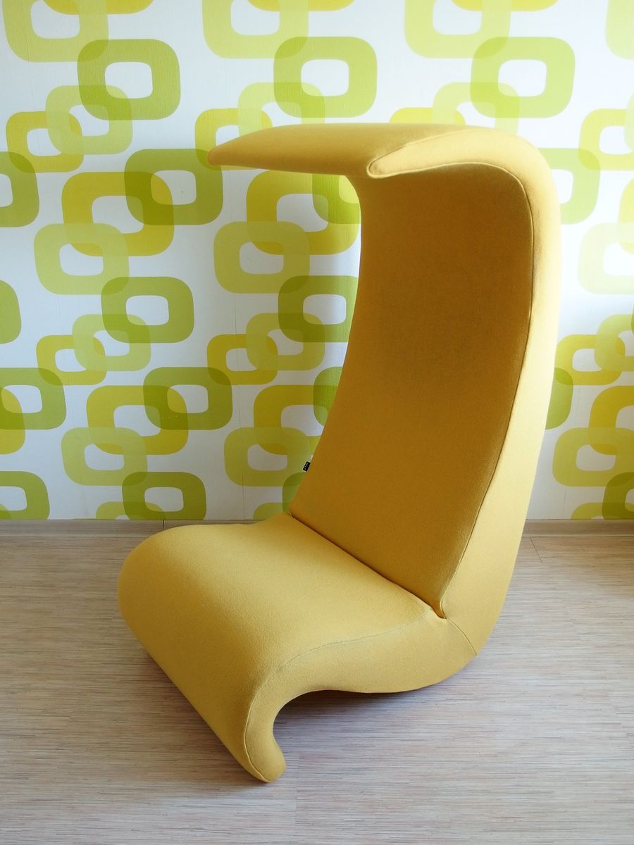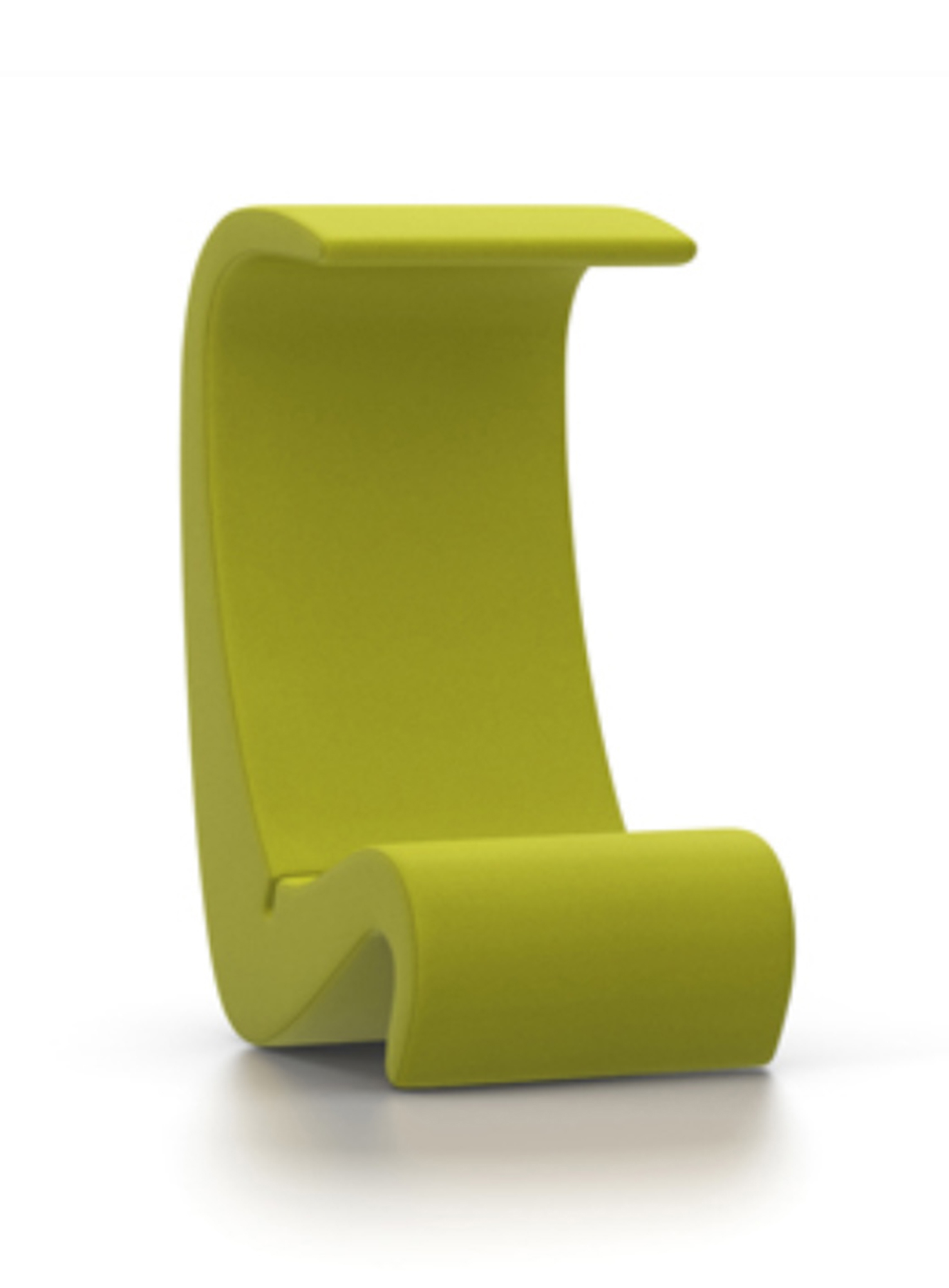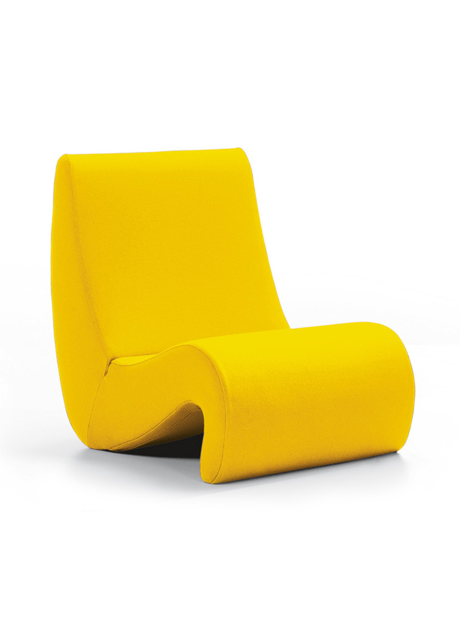 椅子的Amoebe Highback版本有一个灵活的靠背,可以在保姆的头部弯曲,形成一个雕塑的顶篷。 这种醒目的口音赋予椅子一种住所和隔离感。