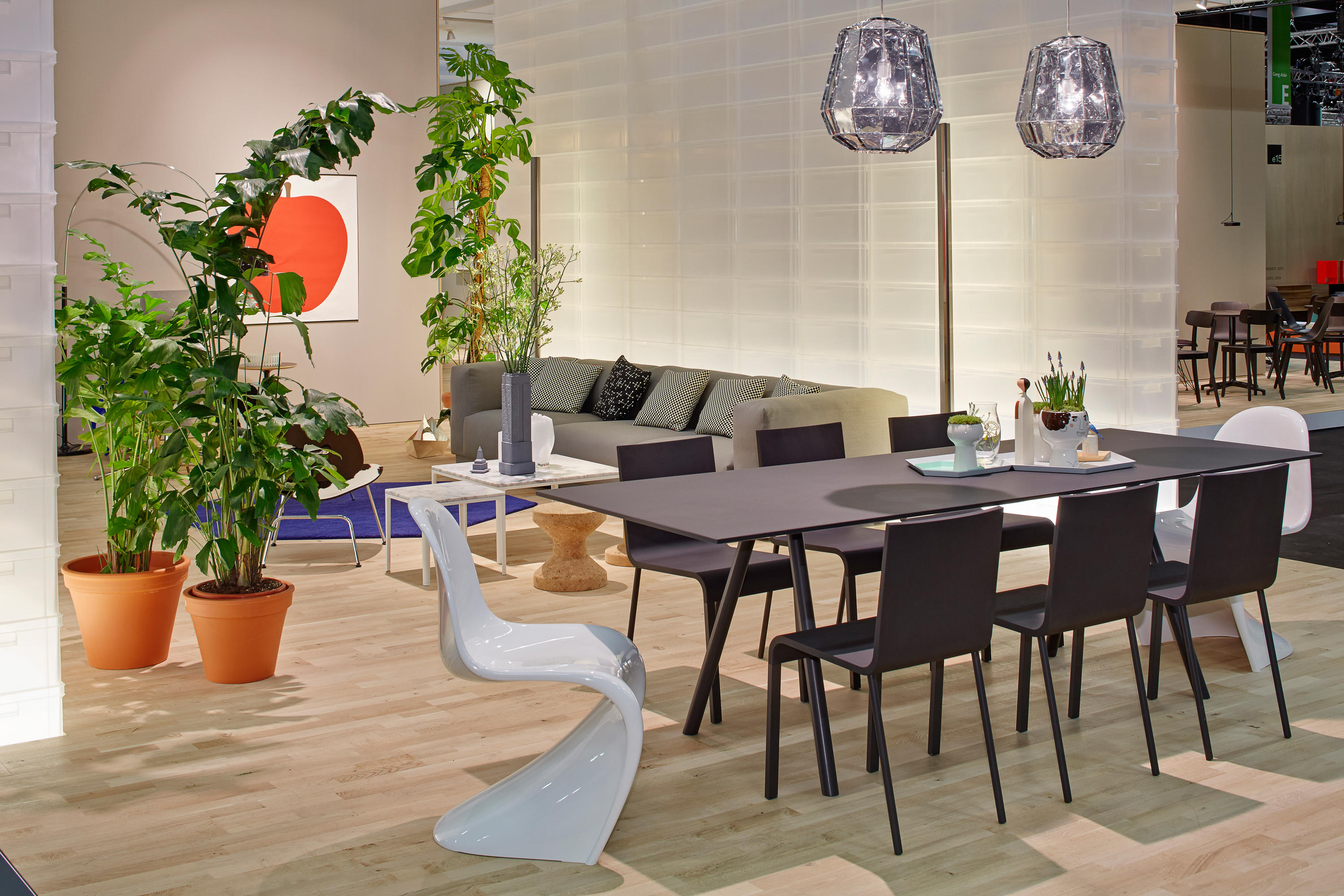 像A-Table这样的纯粹设计使Maarten Van Severen成名:具有象征美感和精心平衡比例的产品成为他的标志。 桌面采用油毡表面,这是一种天然且耐磨的材料,营造出整体效果。 黑色桌腿突出了这种外观。