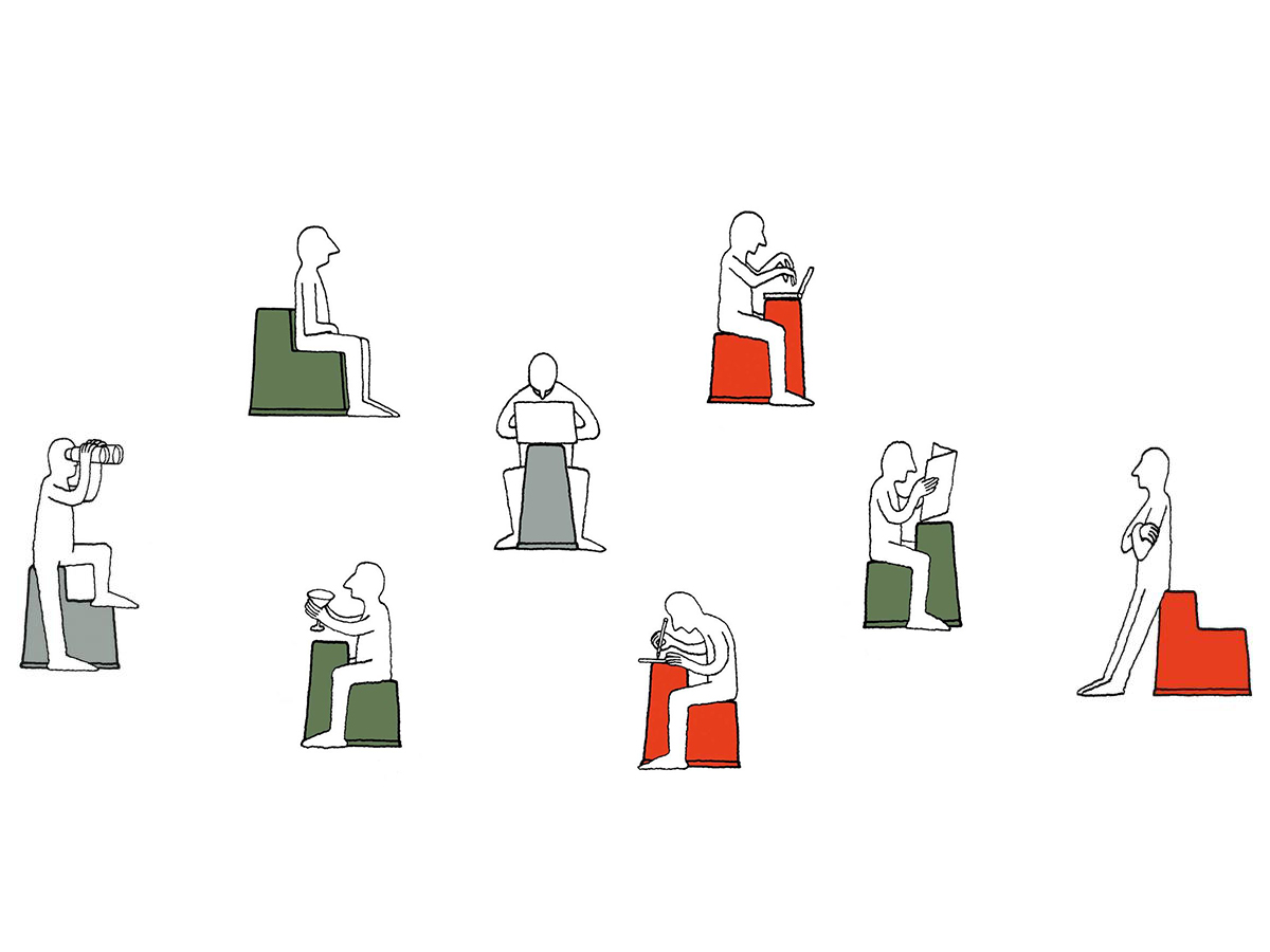 通过其阶梯式平台,Stool-Tool将椅子和桌子组合在同一个对象中。 它允许在空间中设置多个座位和方向,其桌面式靠背可用作小型工作或存储表面。 这种多功能性使得Stool-Tool成为一种多功能办公家具,可为任何工作空间增添价值。 Stool-Tool完美适应各种环境,从公共场所到办公室的小型公共区域,从车间和会议室到角落和间隙,否则将无法使用。