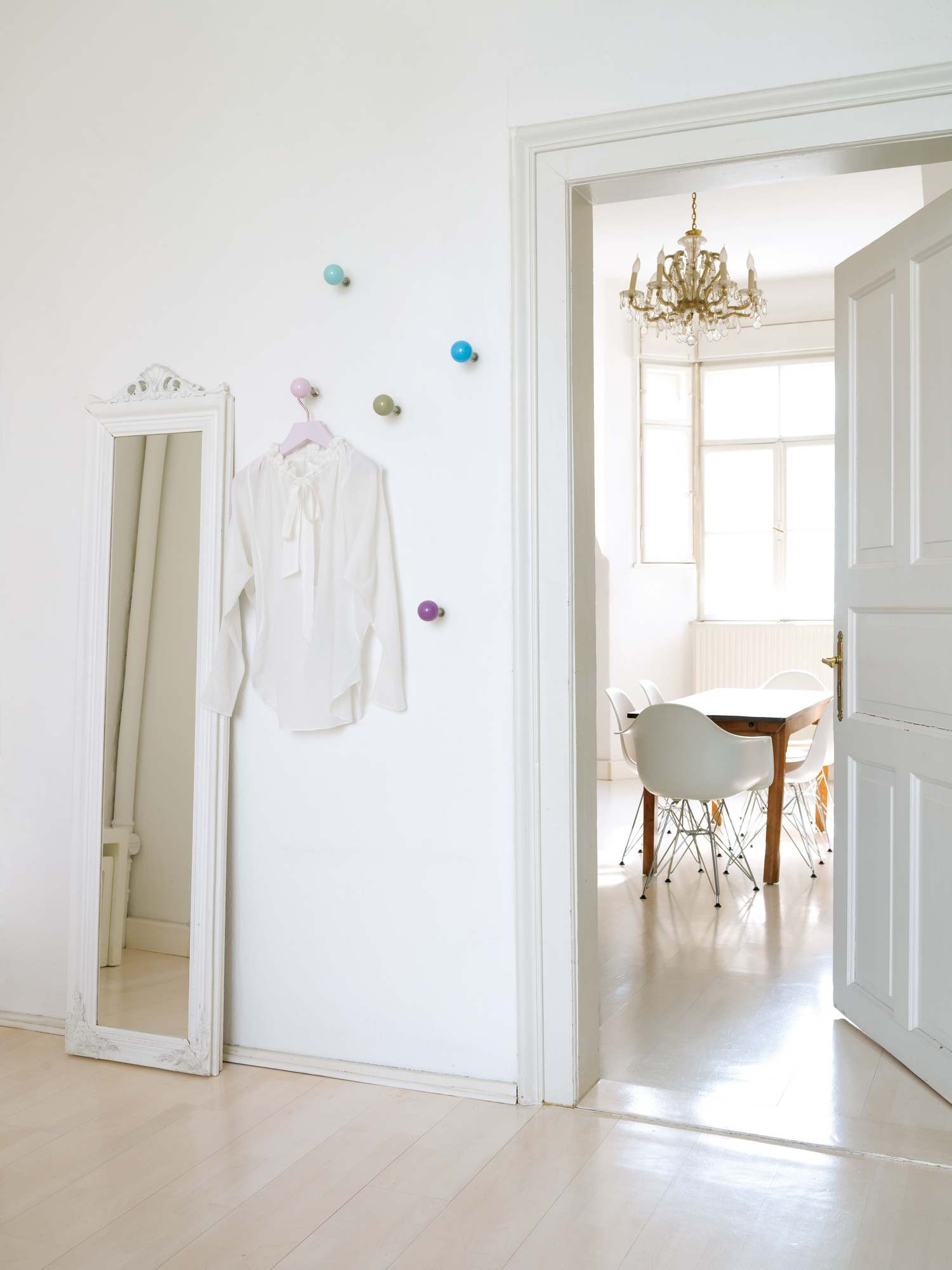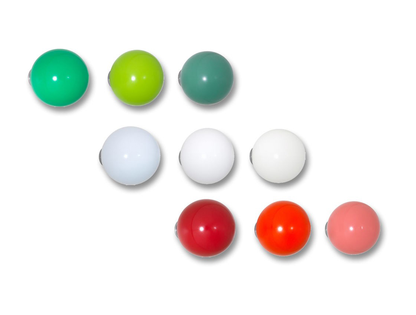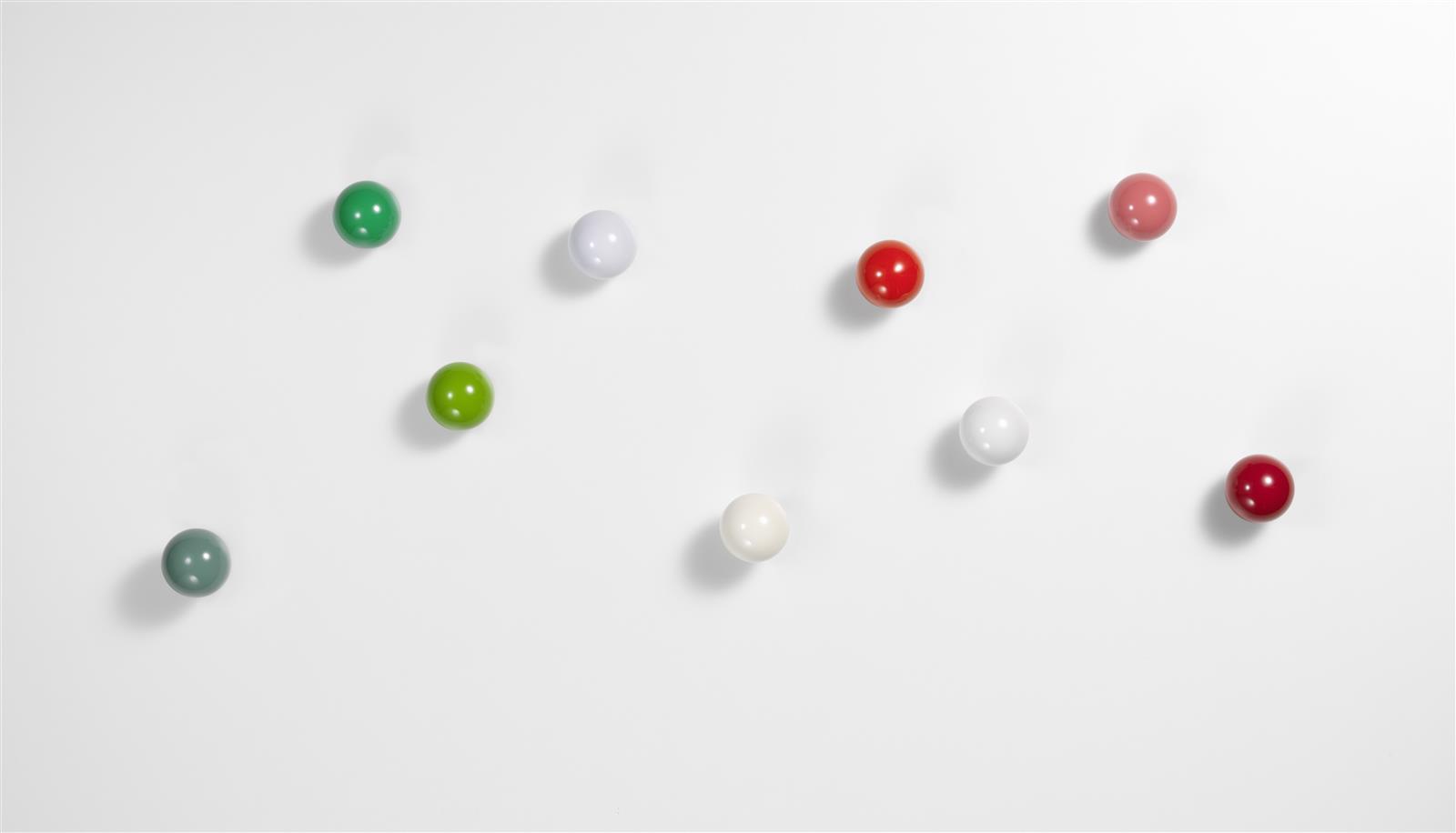 Hella Jongerius的Coat Dots安装在一个可伸缩的销钉上,可以稍微拉离墙壁,为夹克和衣架提供方便的挂钩。 同时,它们也可以简单地用作装饰墙元件。 涂层点有三种颜色协调的球,包括安装材料。