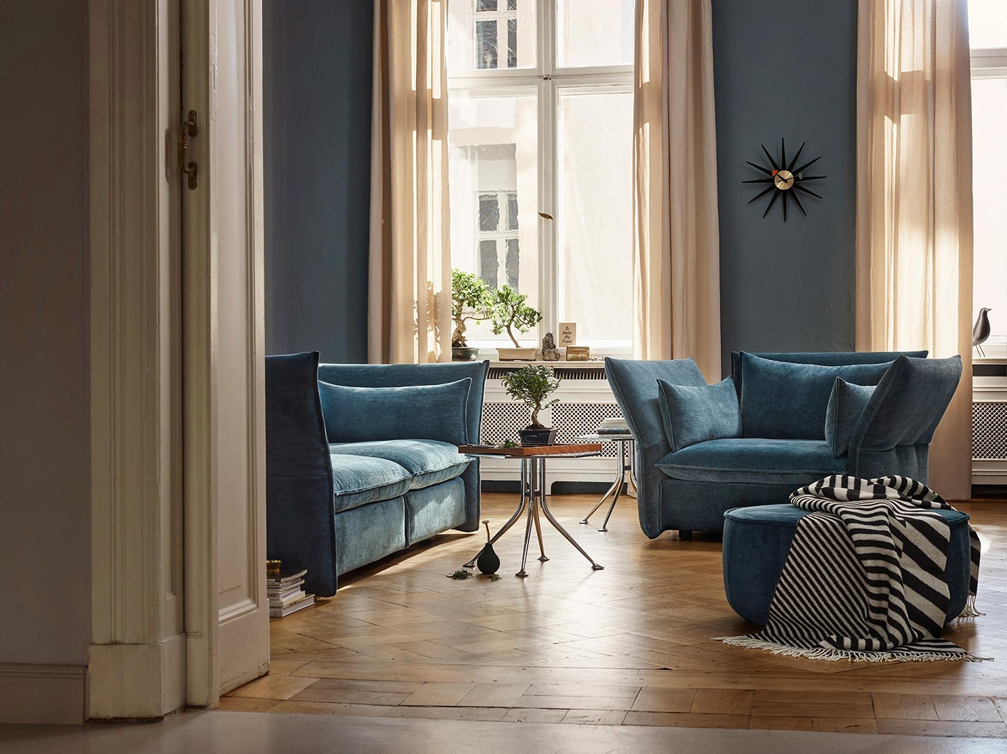 信仰进步和日益增长的经济繁荣是1950年左右美国生活方式的核心方面。一切似乎都有可能,人们努力做到“现代”。 为了将现代设计融入美国家庭,乔治·尼尔森构思了各种日常用品:灯具,钟表和其他家居饰品。 直到20世纪70年代,尼尔森办公室为家庭创造了许多不同的物品,包括泡泡灯和球钟,它们成为了本世纪中期现代设计的象征。