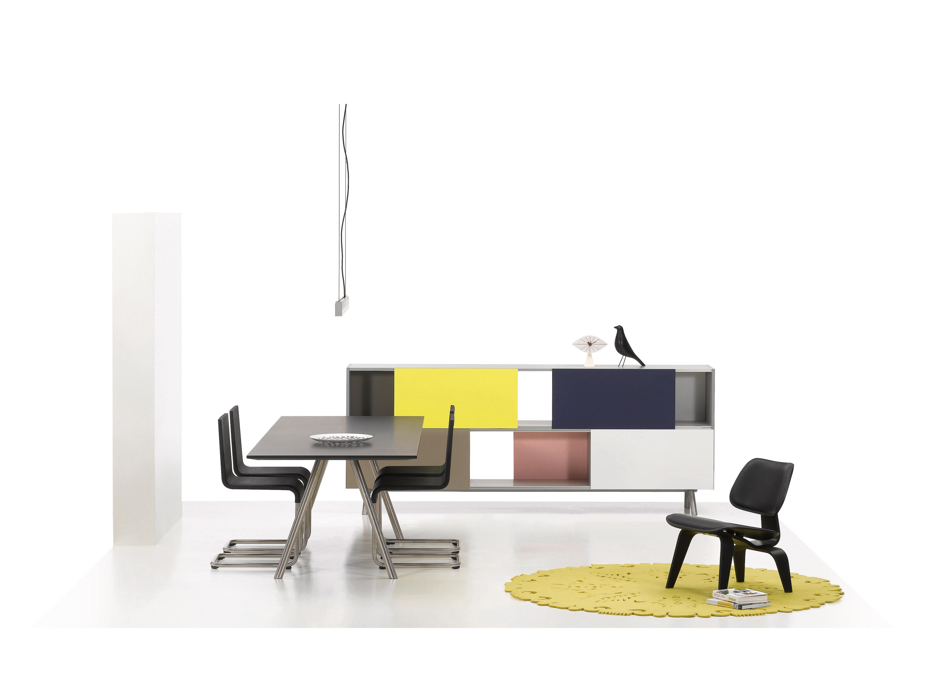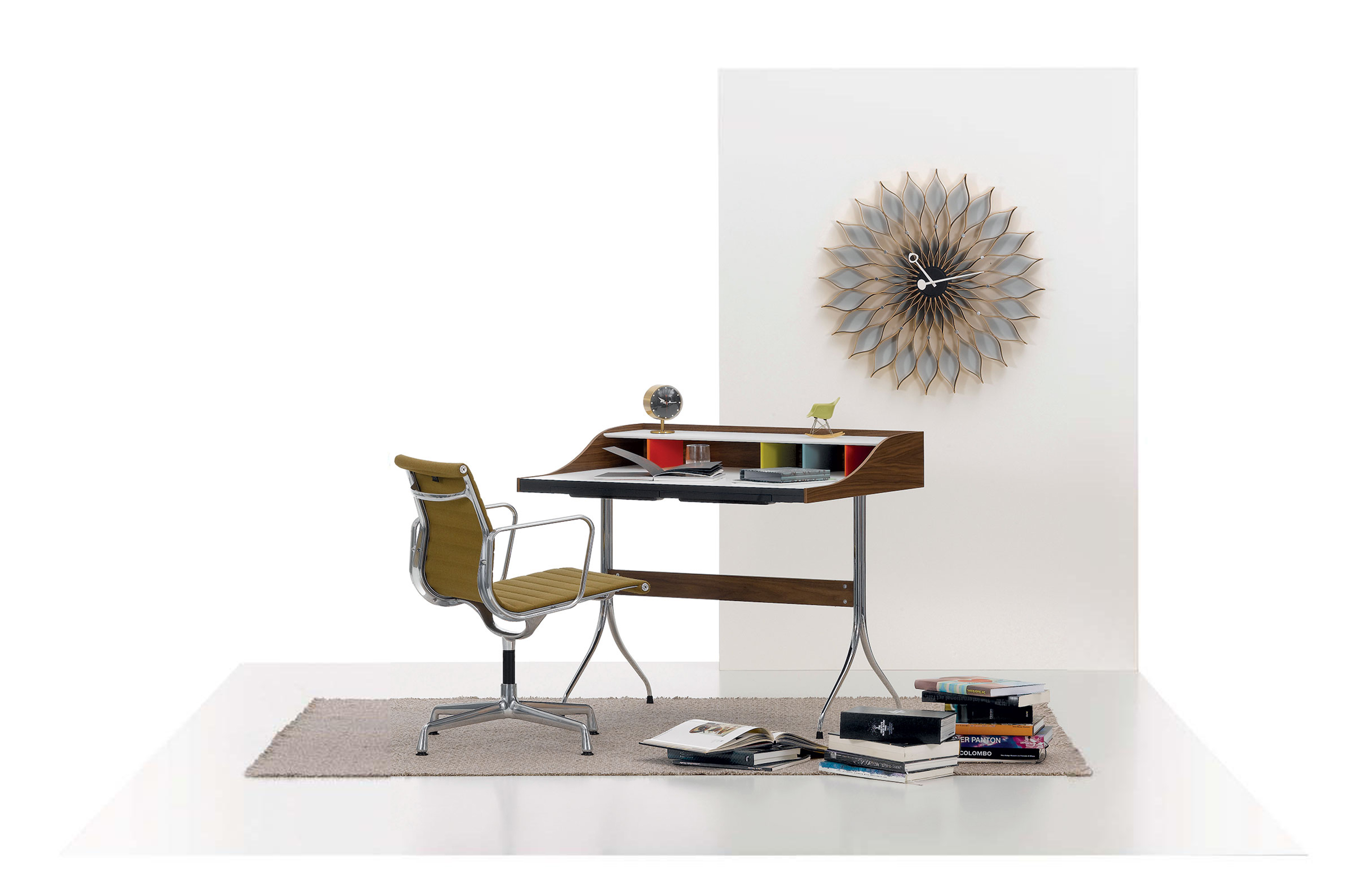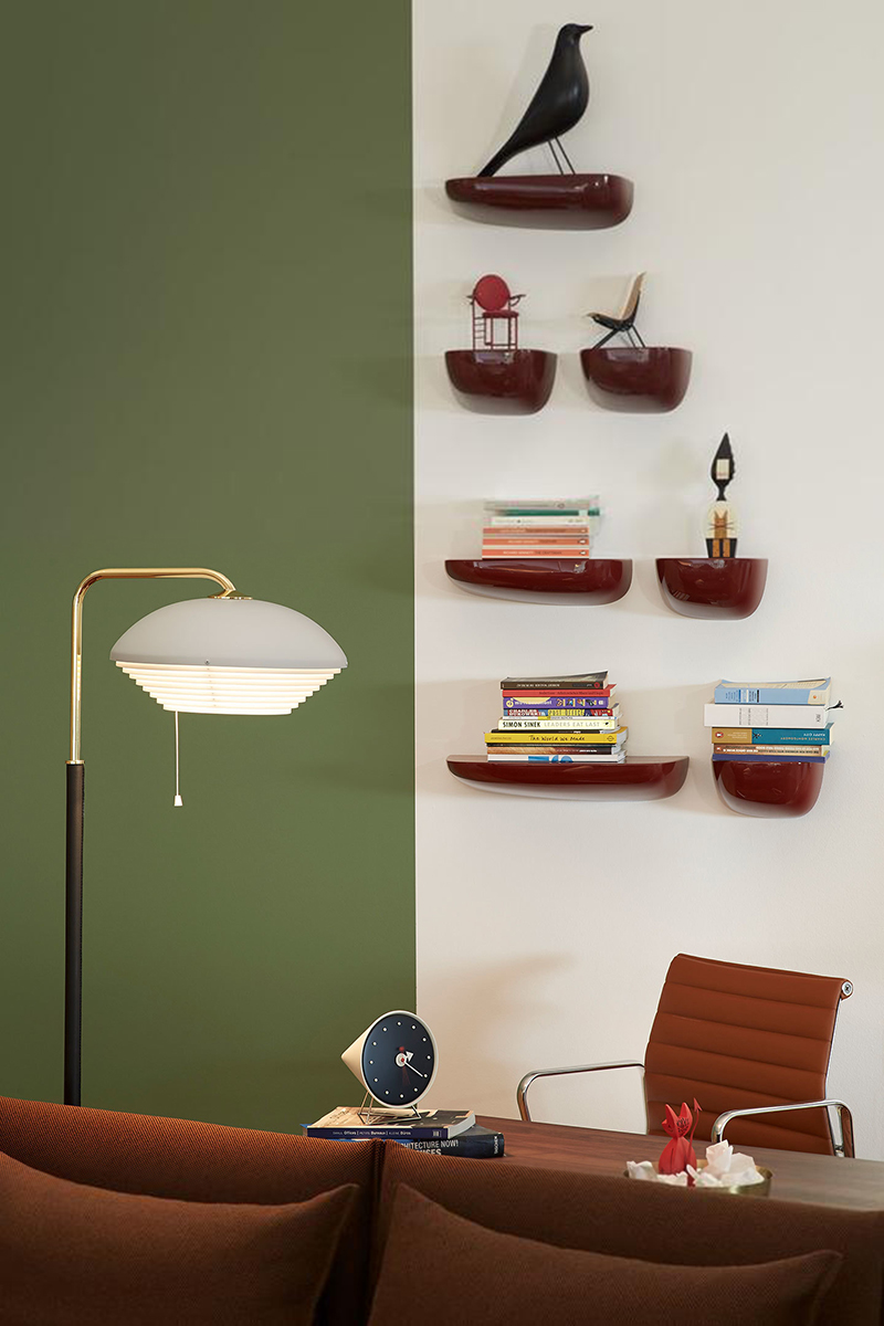 信仰进步和日益增长的经济繁荣是1950年左右美国生活方式的核心方面。一切似乎都有可能,人们努力做到“现代”。 为了将现代设计融入美国家庭,乔治·尼尔森构思了各种日常用品:灯具,钟表和其他家居饰品。 直到20世纪70年代,尼尔森办公室为家庭创造了许多不同的物品,包括泡泡灯和球钟,它们成为了本世纪中期现代设计的象征。