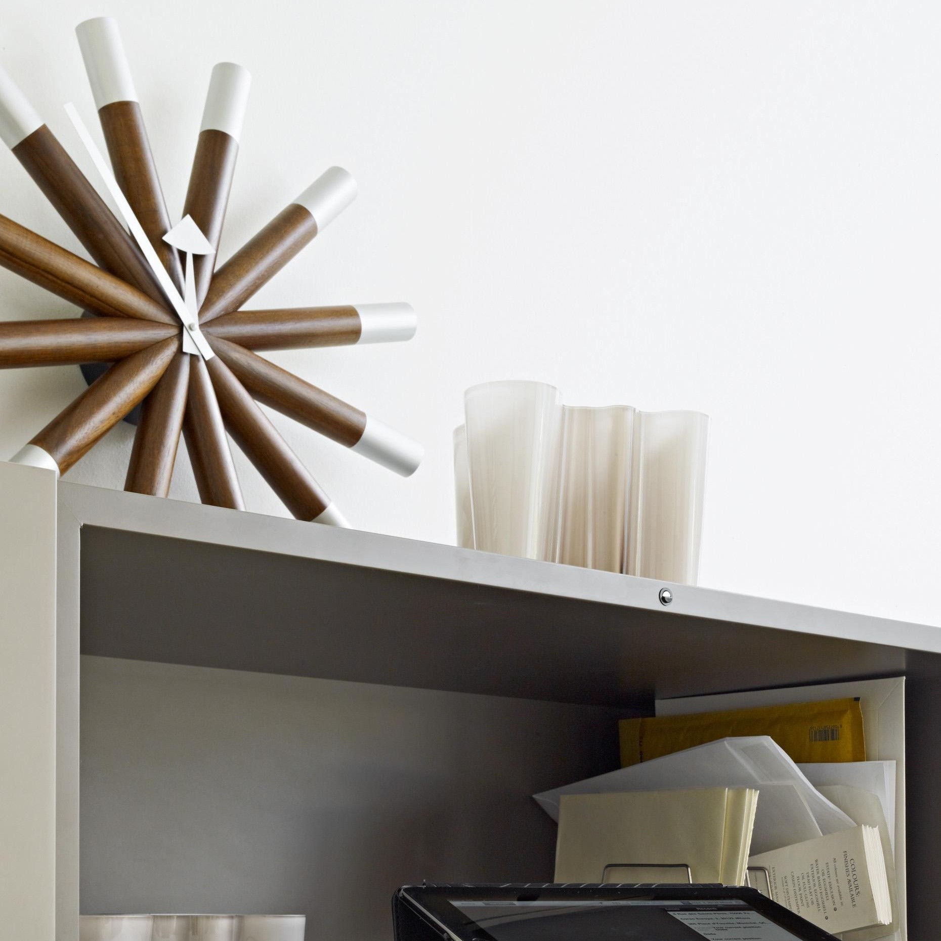 信仰进步和日益增长的经济繁荣是1950年左右美国生活方式的核心方面。一切似乎都有可能,人们努力做到“现代”。 为了将现代设计融入美国家庭,乔治·尼尔森构思了各种日常用品:灯具,钟表和其他家居饰品。 直到20世纪70年代,尼尔森办公室为家庭创造了许多不同的物品,包括泡泡灯和球钟,它们成为了本世纪中期现代设计的象征。