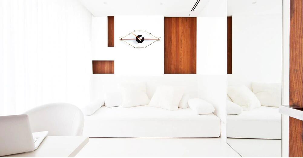 信仰进步和日益增长的经济繁荣是1950年左右美国生活方式的核心方面。一切似乎都有可能,人们努力做到“现代”。 为了将现代设计融入美国家庭,乔治·尼尔森构思了各种日常用品:灯具,钟表和其他家居饰品。 直到20世纪70年代,尼尔森办公室为家庭创造了许多不同的物品,包括泡泡灯和球钟,它们成为了本世纪中期现代设计的象征。