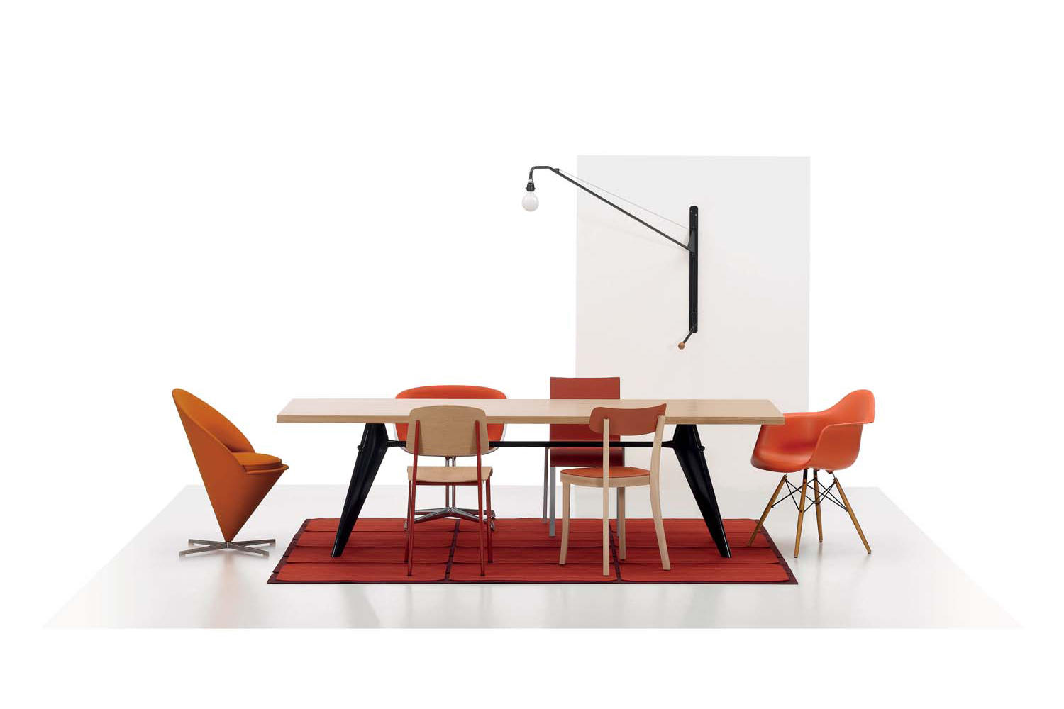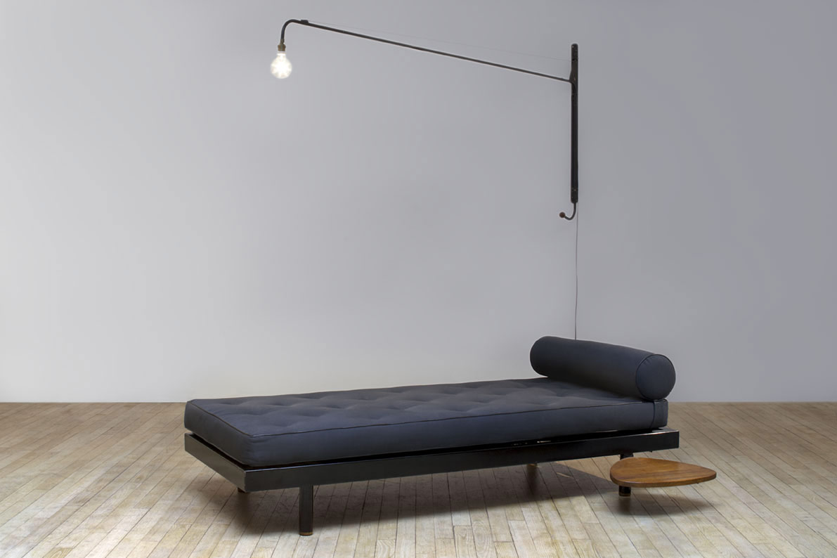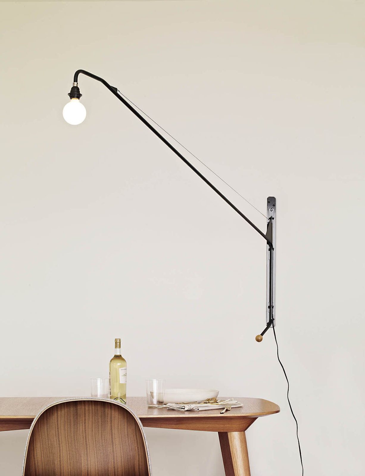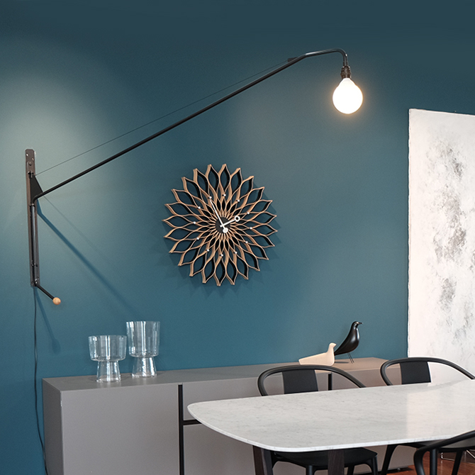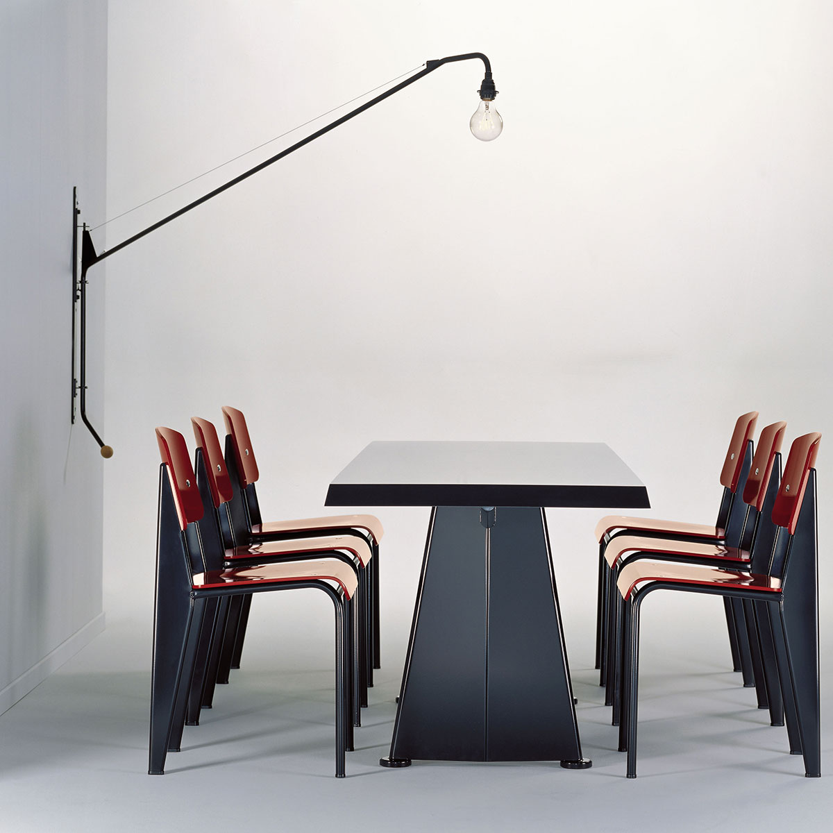 Potence壁灯是JeanProuvé的纯粹杰作之一。 减少了必需品 - 一个灯泡和一个旋转壁挂 - 长摆臂壁灯由粉末涂层管状钢制成,带有山毛榉木手柄。 灯由调光器控制,并配有灯泡。