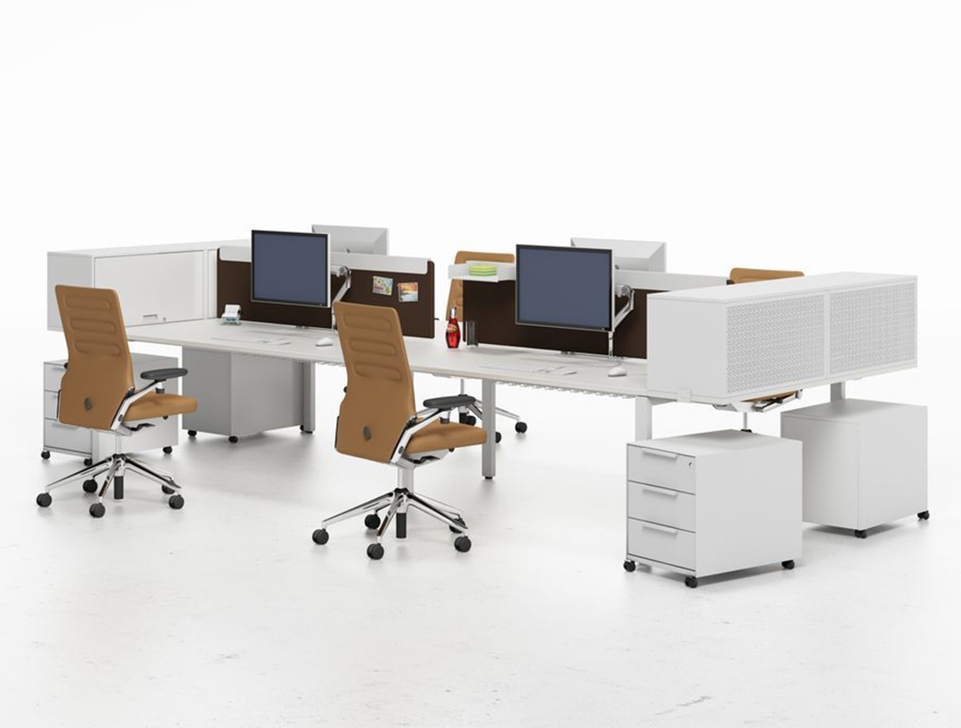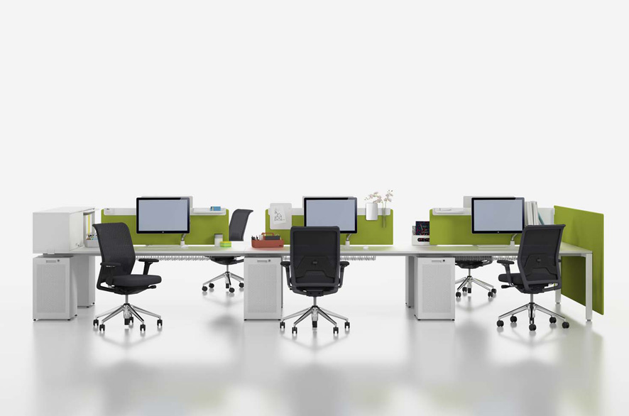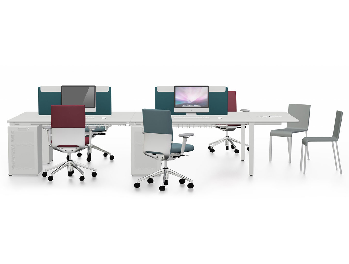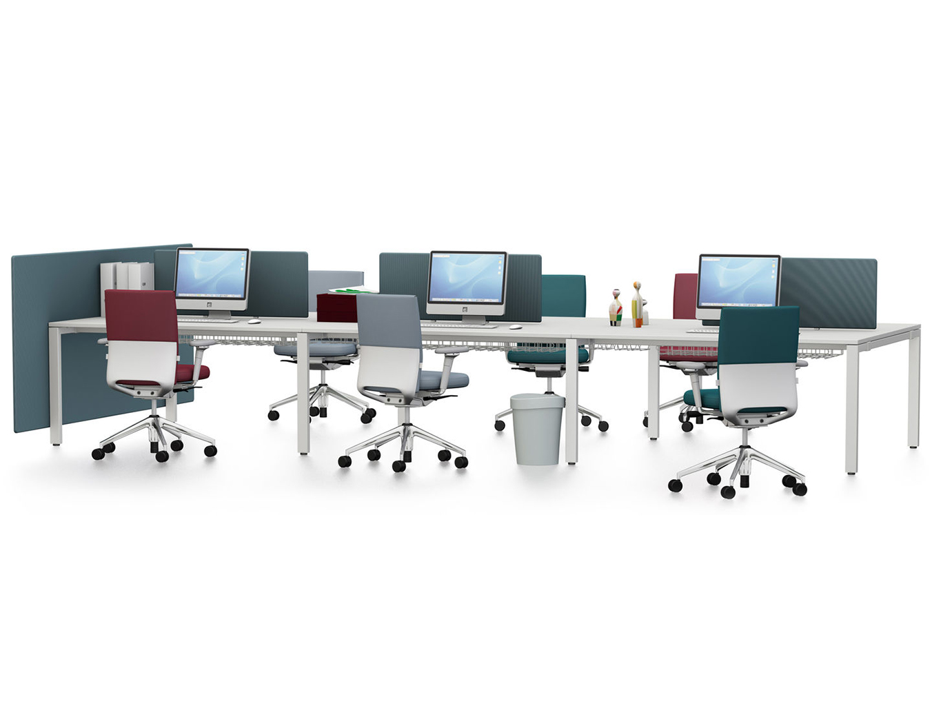 WorKit办公家具系统可用于为个人和团队创建多功能工作站。 设计巧妙,表格可轻松适应用户要求。 附加顶部允许会议配置以促进沟通,而中央和侧面屏幕将桌子分成与过程相关的工作站 - 适用于不同大小的个人壁龛或团队长椅。
