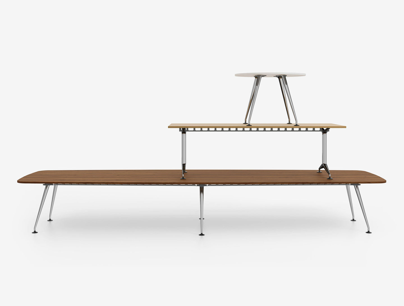 MedaMorph是与Alberto Meda合作开发的,其工程背景在这个着名的会议桌系统的形式和功能中很明显。 简单而精致的底座由星形连接器,可变长度的型材和两种类型的支腿组成,提供模块化选项的构造套件。 除了可配置的访客,会议和会议桌之外,MedaMorph Collection还可以创建任何大小和形状的表格分组。