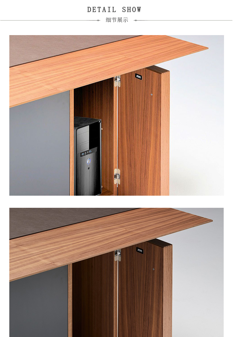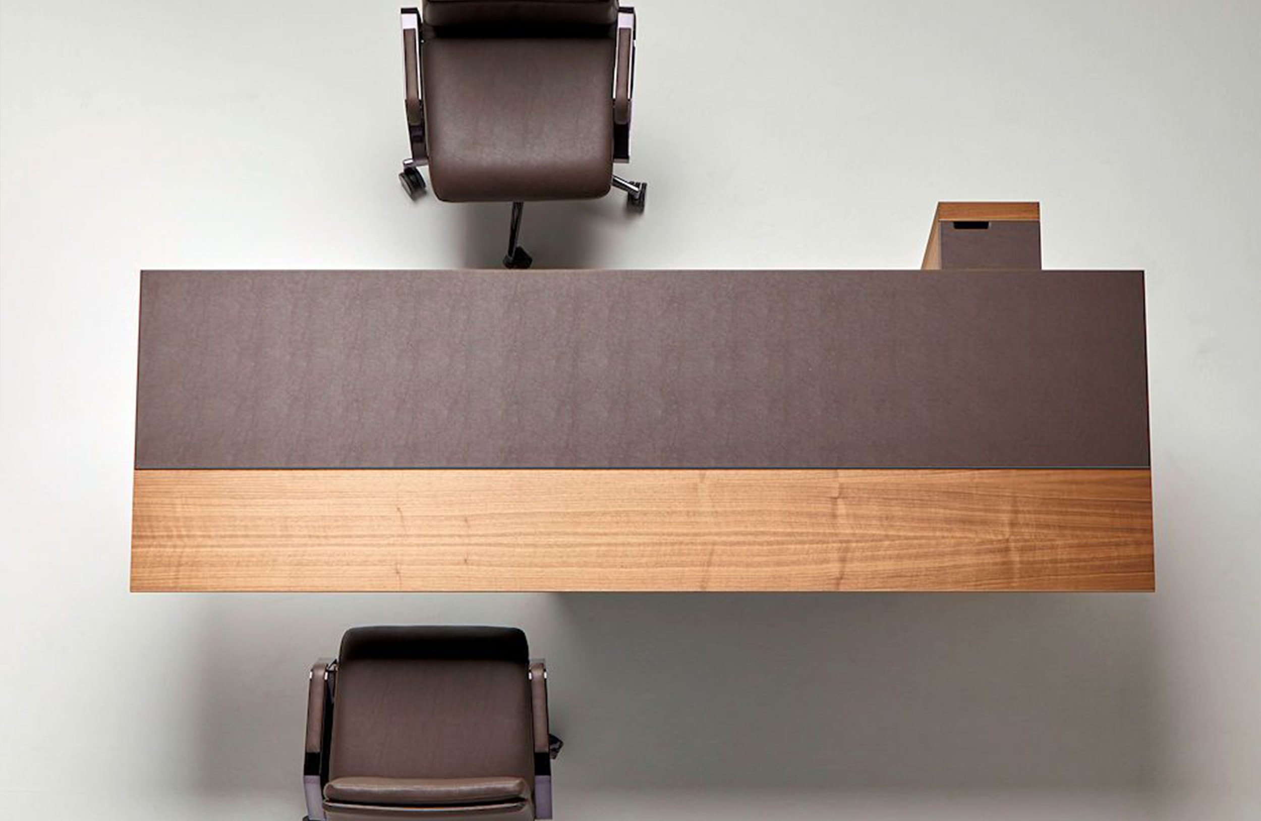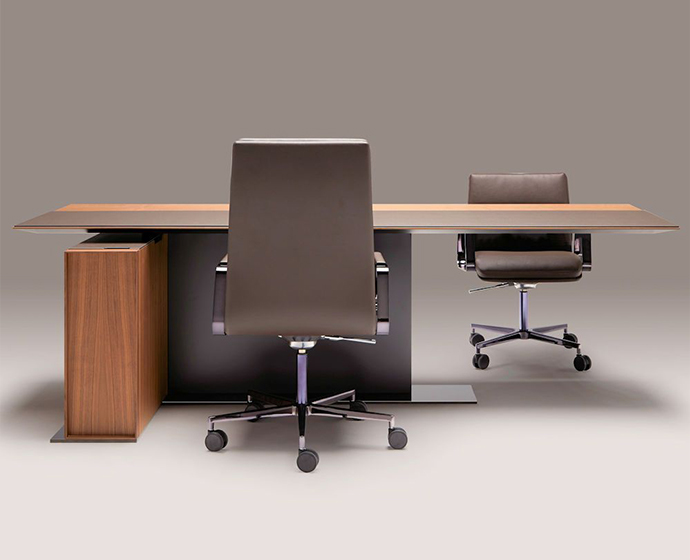 LA MESA行政办公桌采用珍贵的中长木制前面板,融合了经典和通风的外形。