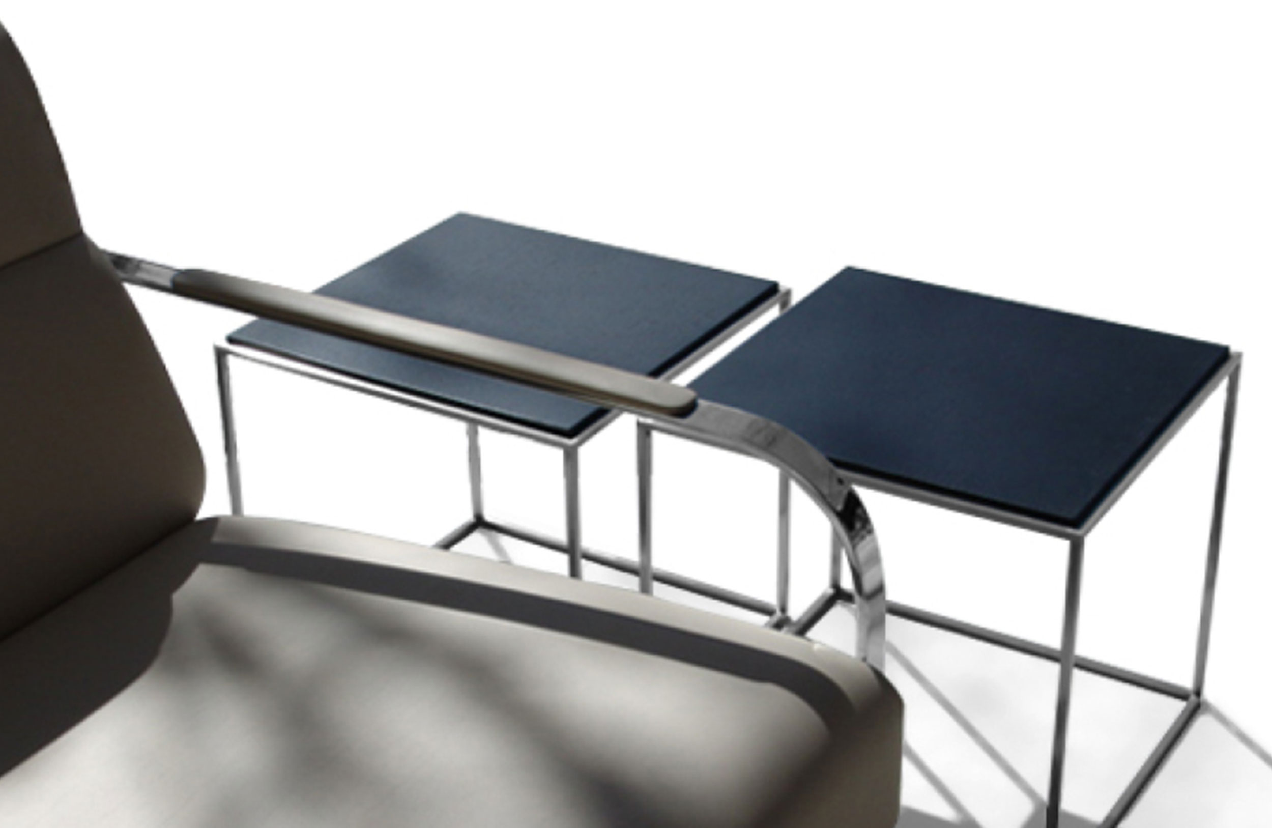 咖啡桌。10mm校准inox金属板框架。16毫米实木或8毫米玻璃顶。表面处理:金属框架采用光泽镀铬处理。WOOD顶部采用木质饰面或微纹理漆。玻璃顶部采用半透明玻璃或黑色漆面玻璃。