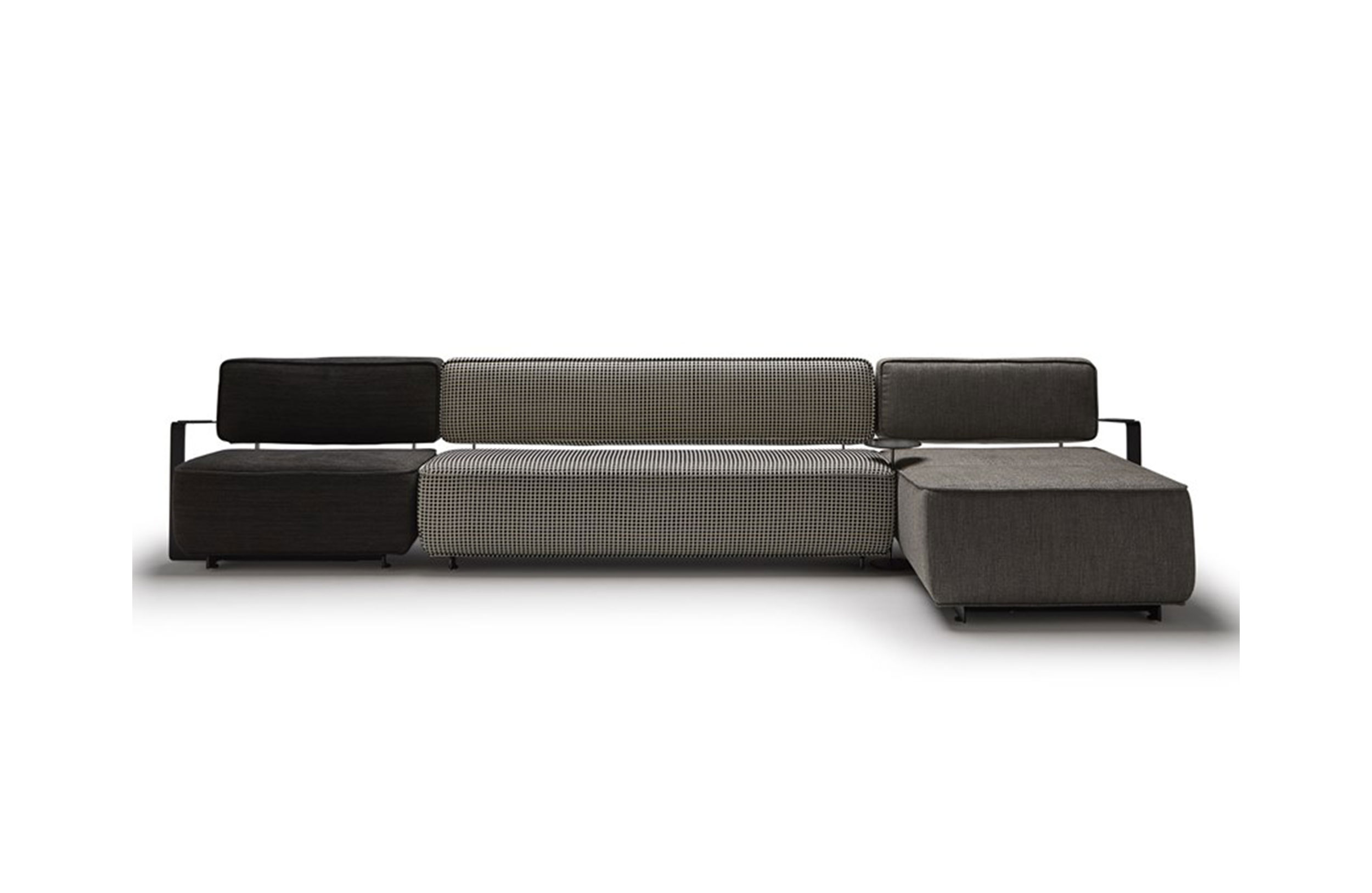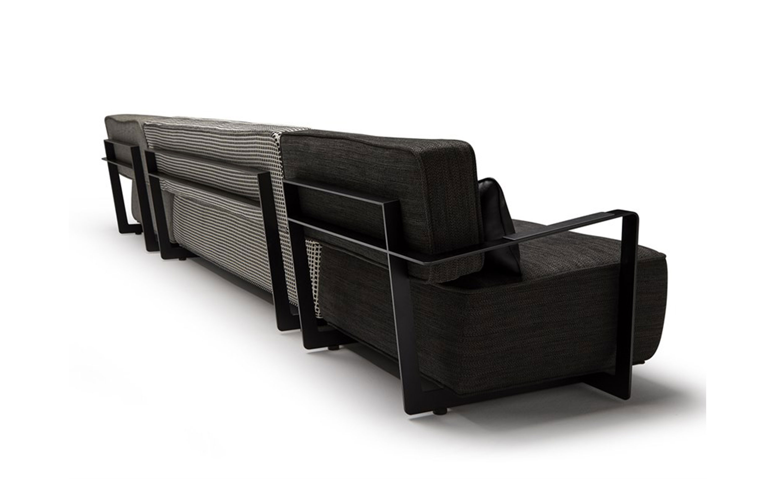 分沙发,在黑校正钢板涂漆制成和使用具有技术或天然皮革的聚氨酯。软垫的不同层所覆盖。