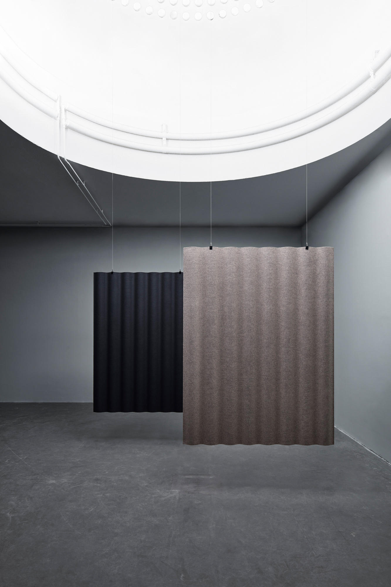 Scala是一个完整的系列屏幕。Scala可以安装在墙壁上,悬挂在天花板上,也可以作为独立式地板屏幕,桌面屏幕和悬挂室分隔板使用。对于地板和桌面屏幕,Anya Sebton开发了由钢管组成的支架,突出了设计的自发方式。