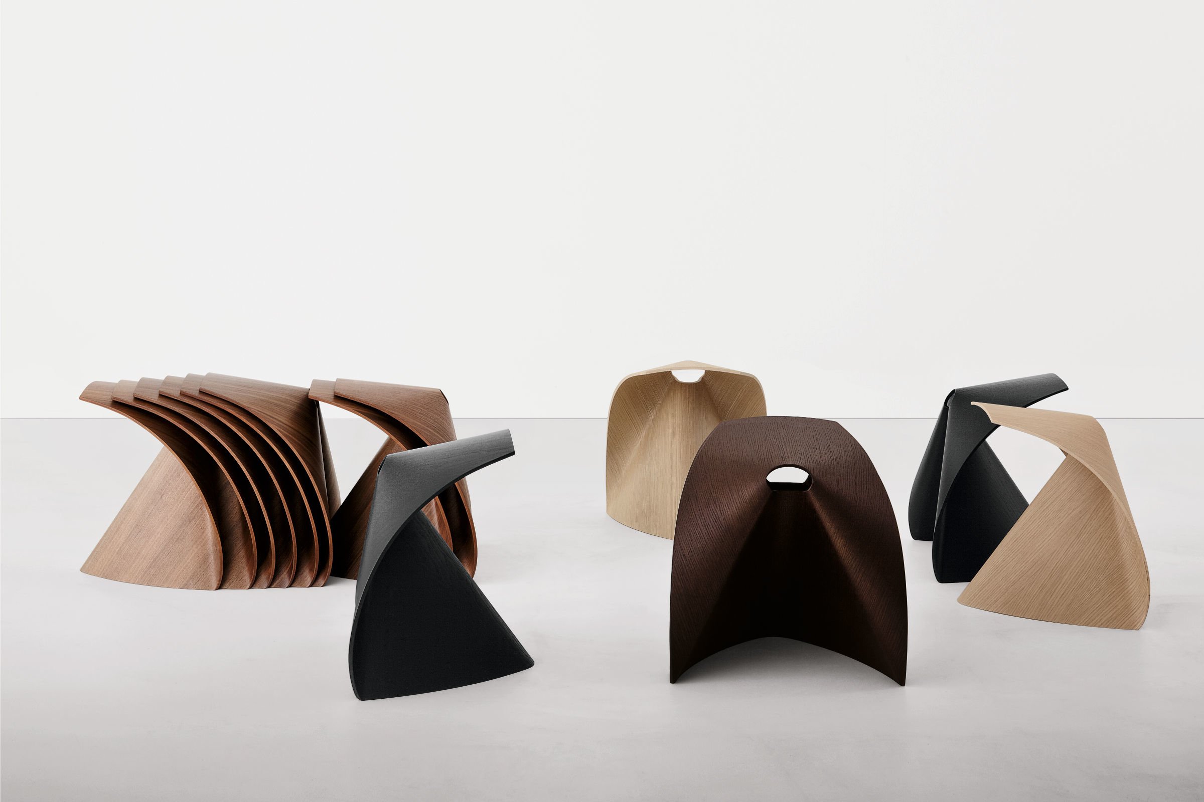 作为对折纸传统的赞颂,这张凳子是通过折叠一张木头制成的。就像手发现纸提供的无尽的形状,发明动物,数字和星星一样,美联社的每一个角度都令人惊讶。这把椅子具有强烈的图形吸引力。它的轻盈是蝴蝶的飞行。