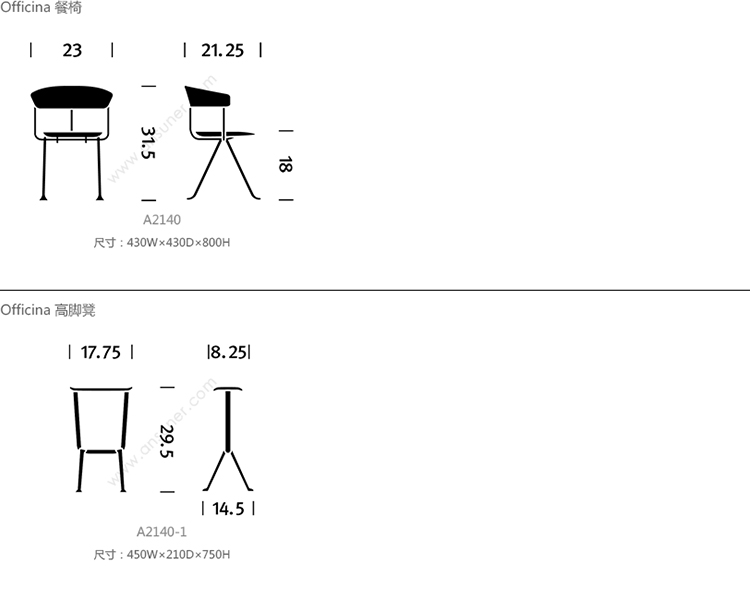 Magis Officina 系列尺寸/示意图