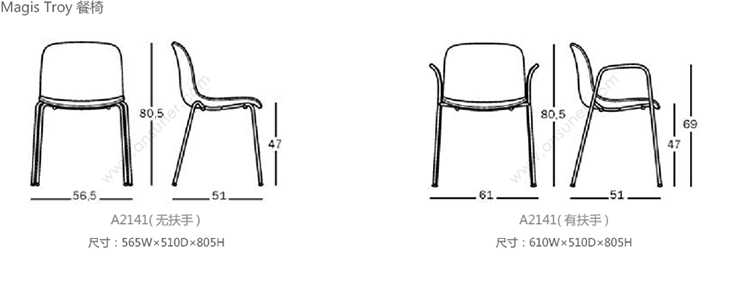 Magis Troy 系列尺寸/示意图