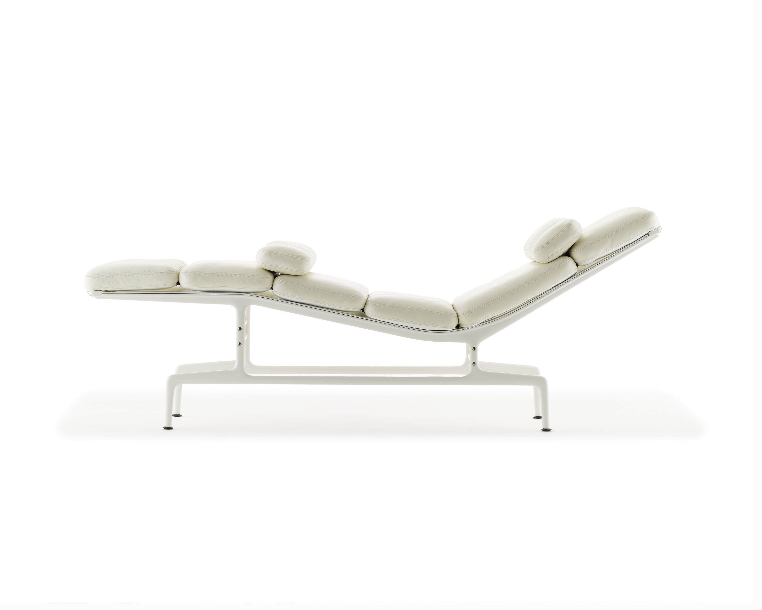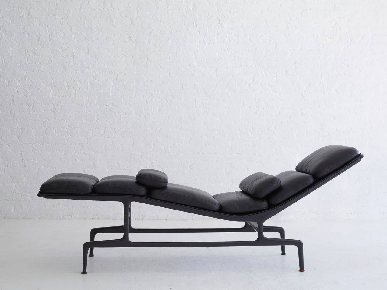 这款躺椅有着整洁的线条和如雕塑般的框架与底座,可谓一件艺术品。这款躺椅有三种颜色组合:茄紫色框架搭配黑色皮革和织物吊带;黑色框架搭配黑色皮革和织物吊带;白色框架搭配珍珠色皮革和白色织物吊带。