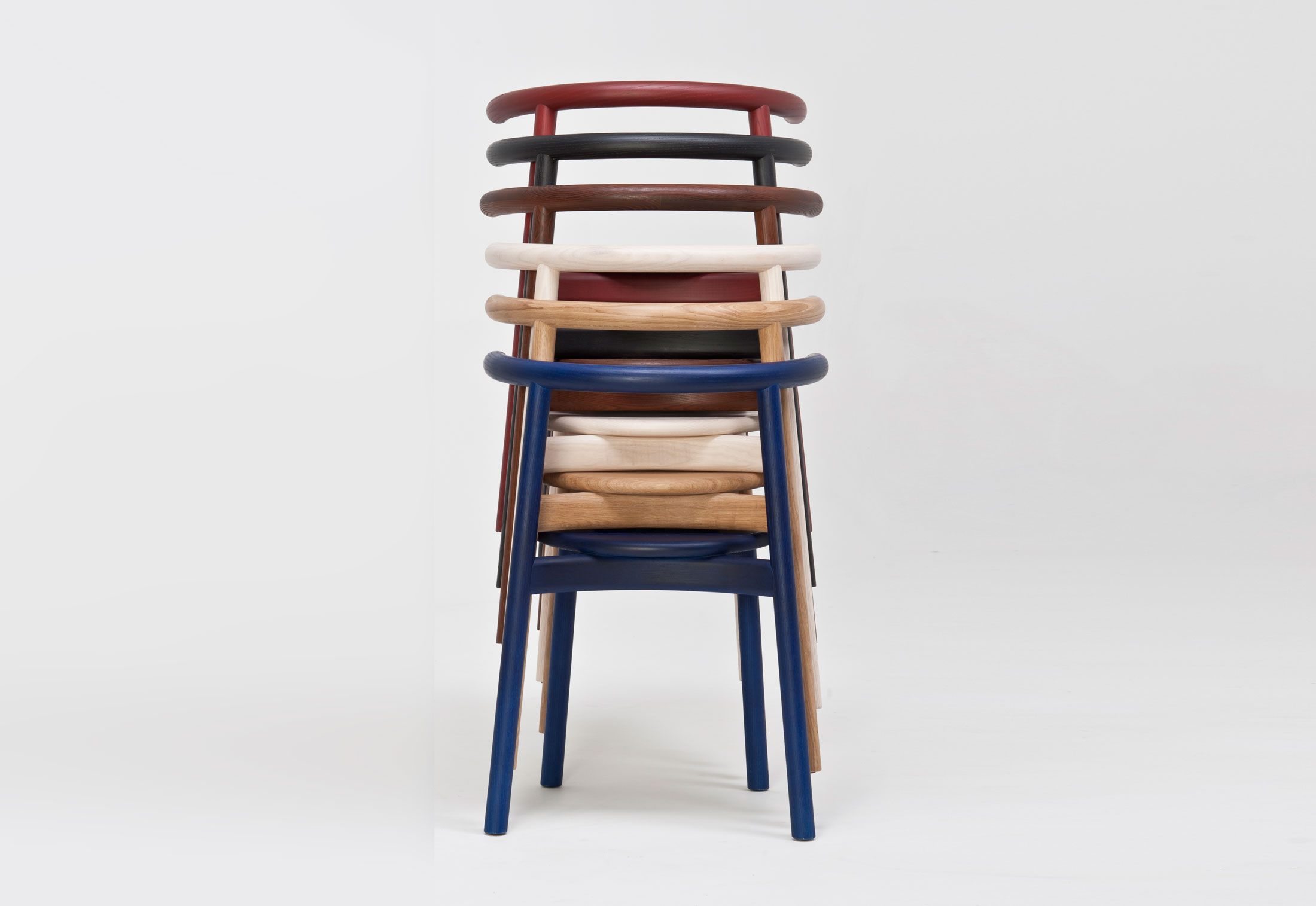 Solo Chair可在天然橡木和天然或漆灰木材。 椅子堆叠3个单位高。