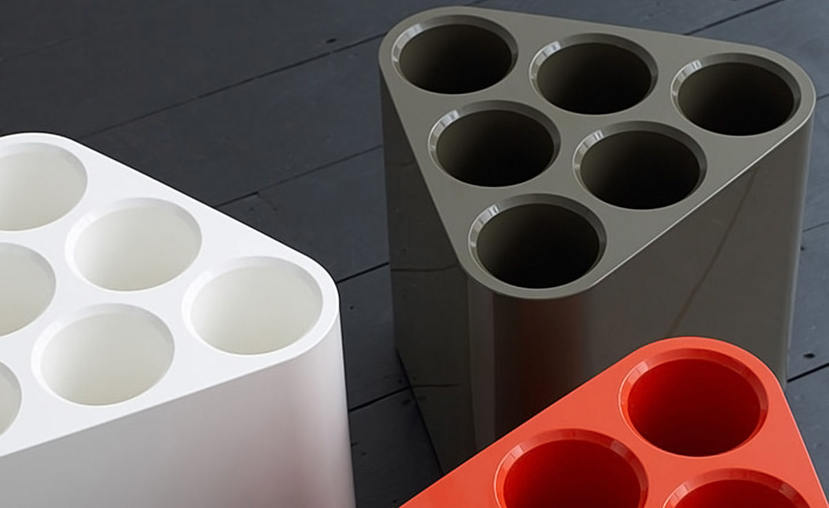 凭借其Umbrella Stand,东伦敦设计师Edward Barber和Jay Osgerby巧妙地诠释了入口标准。 正如Jay Osgerby评论的那样,一系列简单的孔和低调的设计使得“任何尺寸的卷起或展开的雨伞都能完全突然出现。”然而,奇怪的是并不以牺牲功能为代价:围绕着 每个开口的顶部都有任何雨水流入雨伞,而不是在地板上。