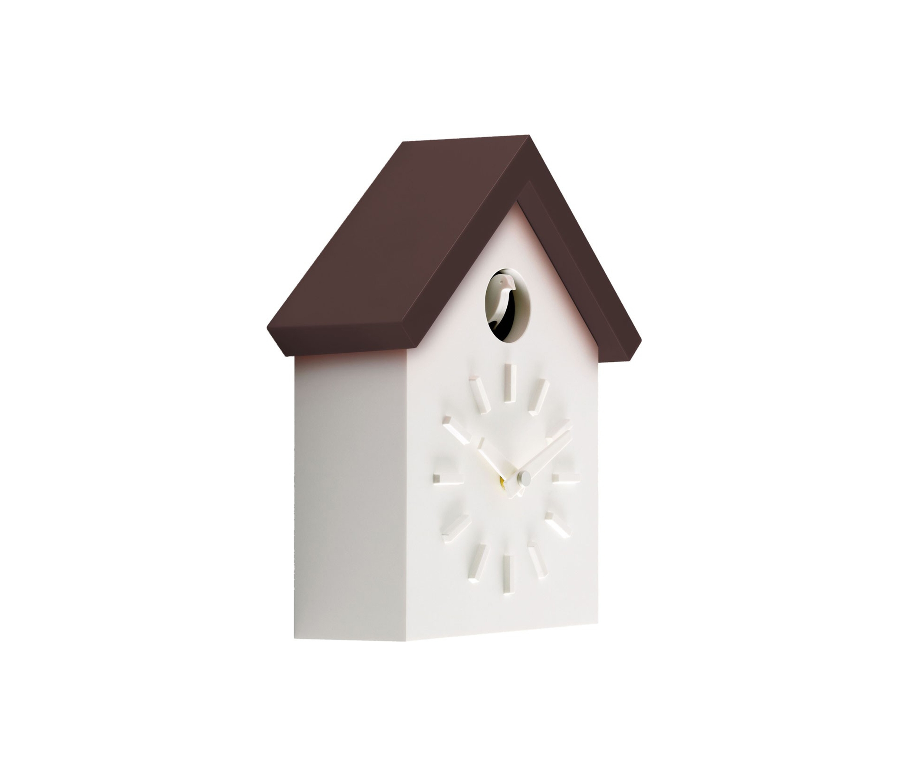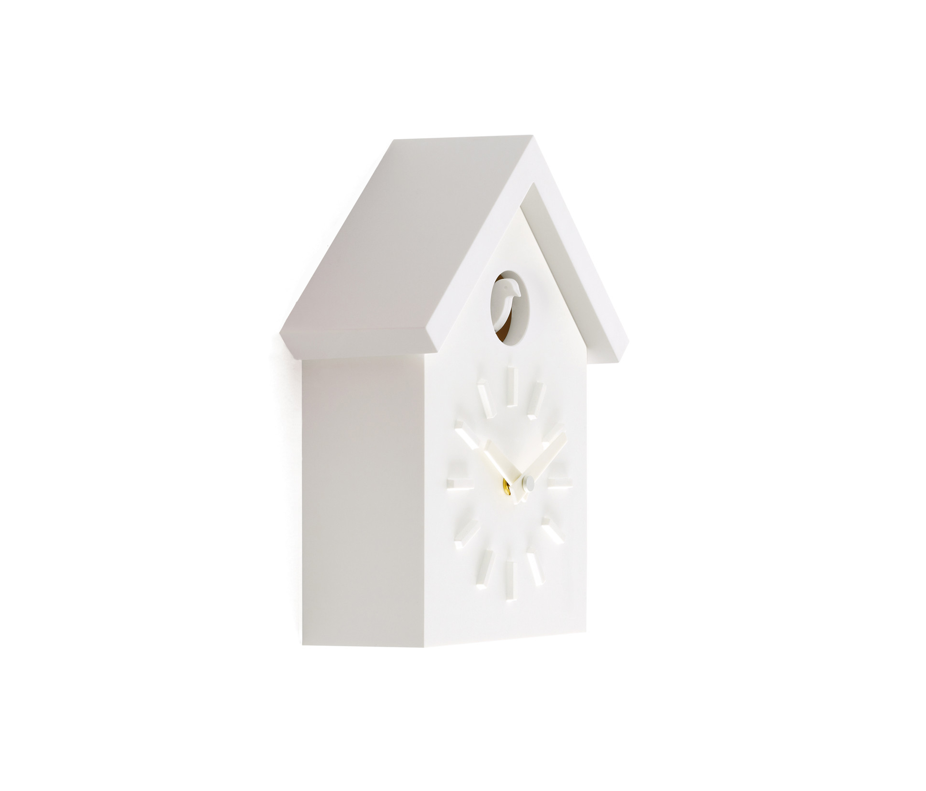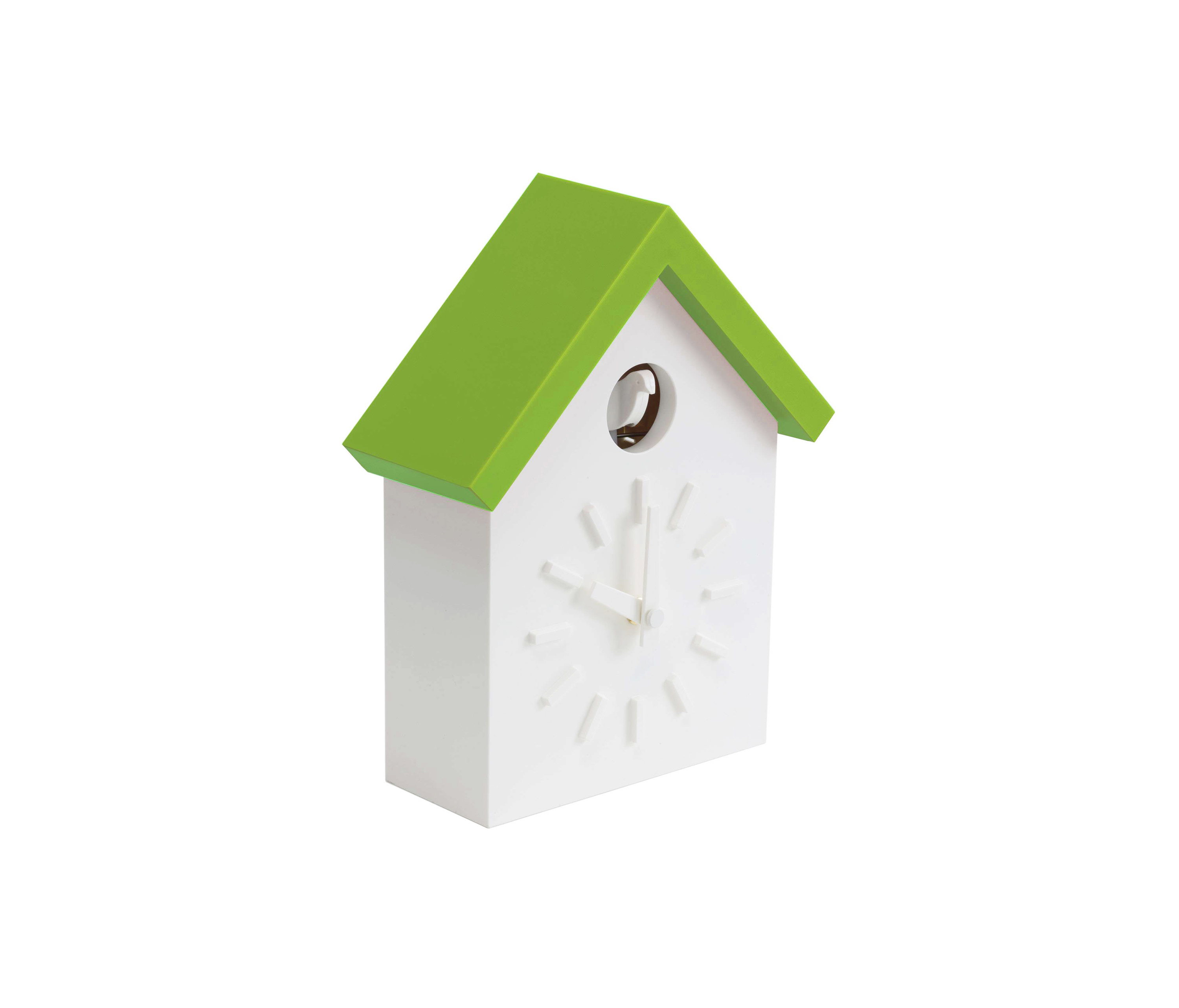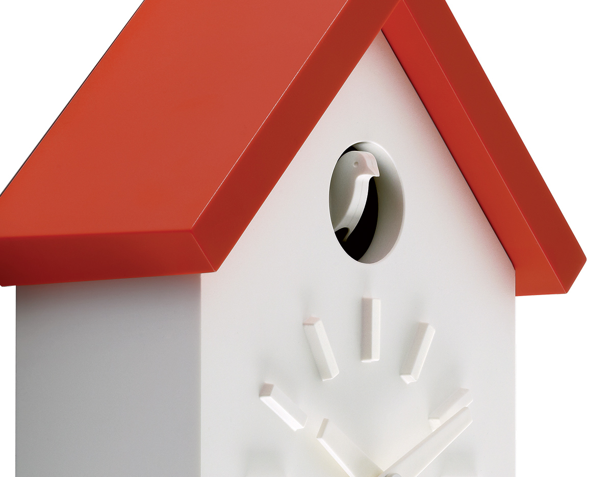 日本设计师福川忠雄(NaotoFuasawa)为马吉斯(Magis)提供了一种对传统的当代转折。巧妙地剥去装饰,木制齿轮,吊坠和链条,这决定了传统的黑森林布谷鸟钟的外观,福川在它的位置留下干净的线条,标准注射成型的ABS和电池动力。古钟是对传统、华丽的黑森林布谷鸟钟的简约诠释.一个简单的白色房子,有一个色彩鲜艳的屋顶,为一只小而抽象的鸟儿提供了栖身之所。白色铜钟-有一个屋顶白色,橙色或绿色-将在任何环境中增加幽默。