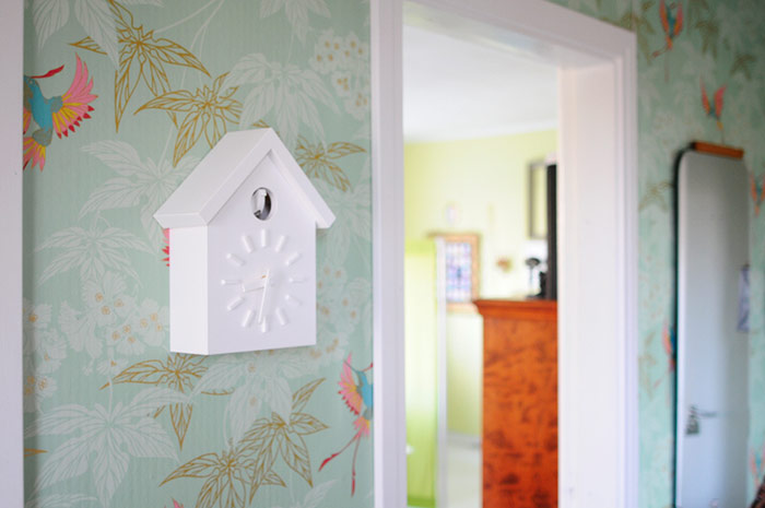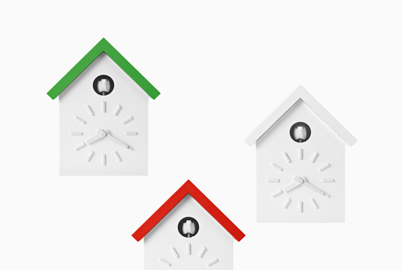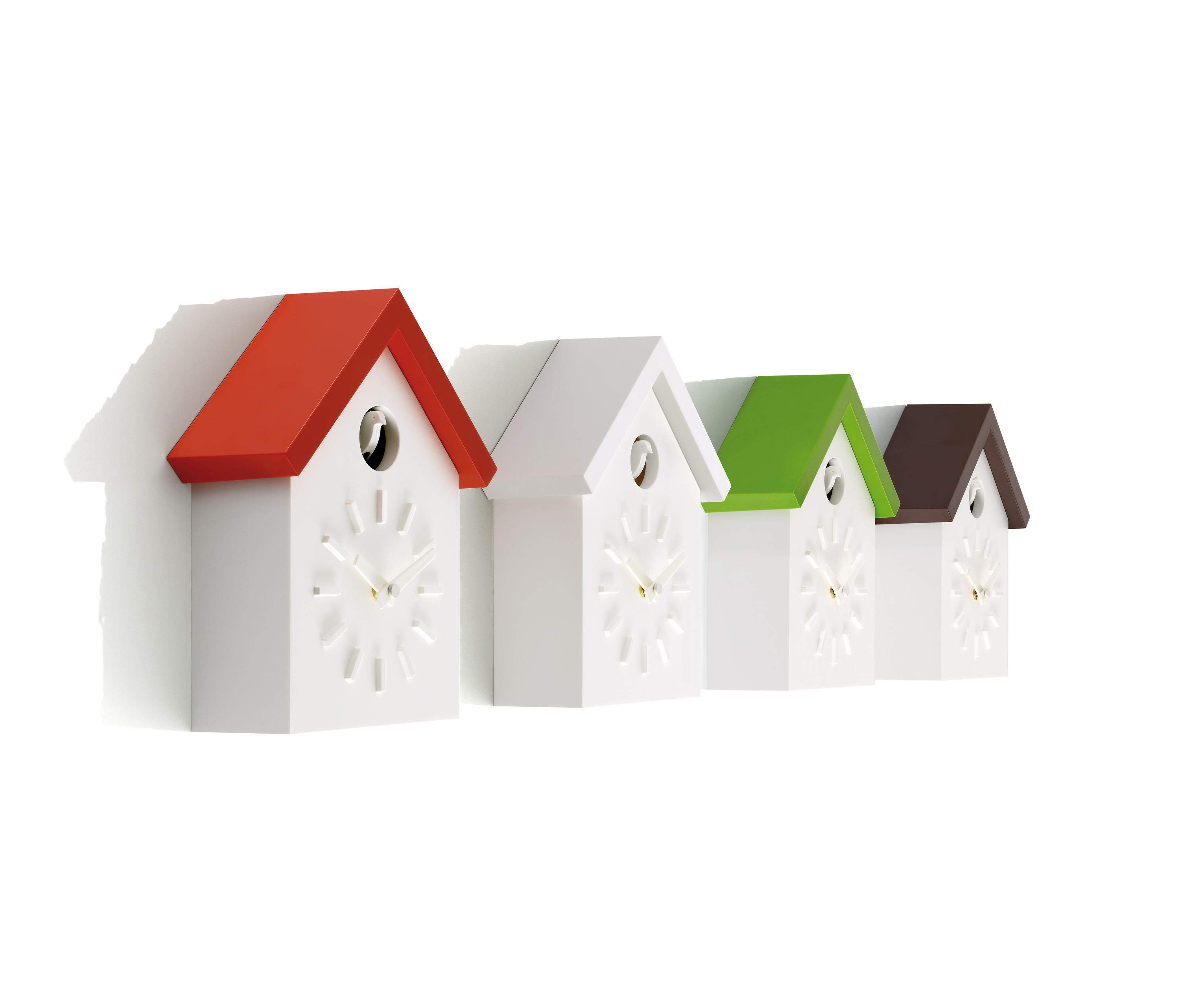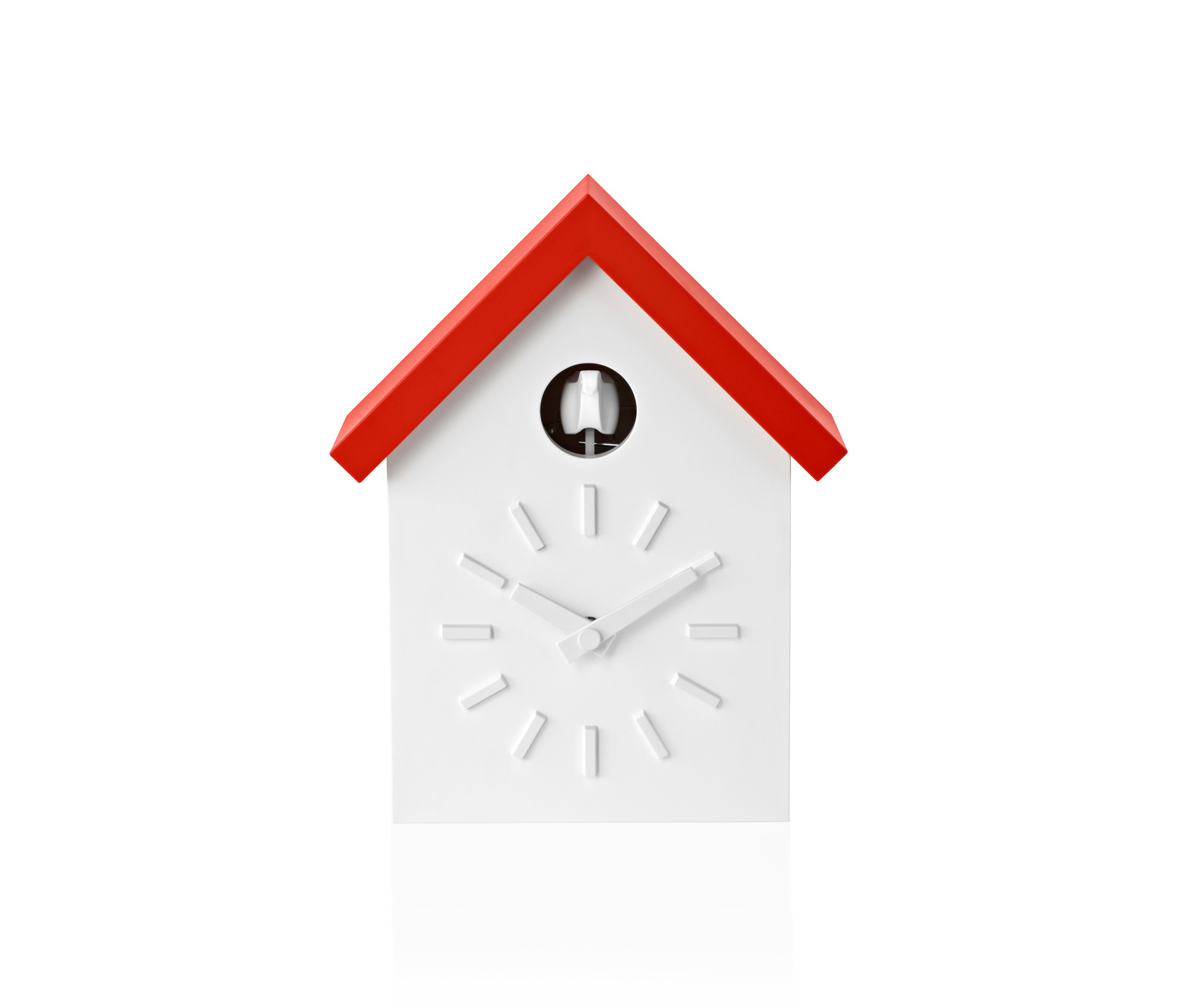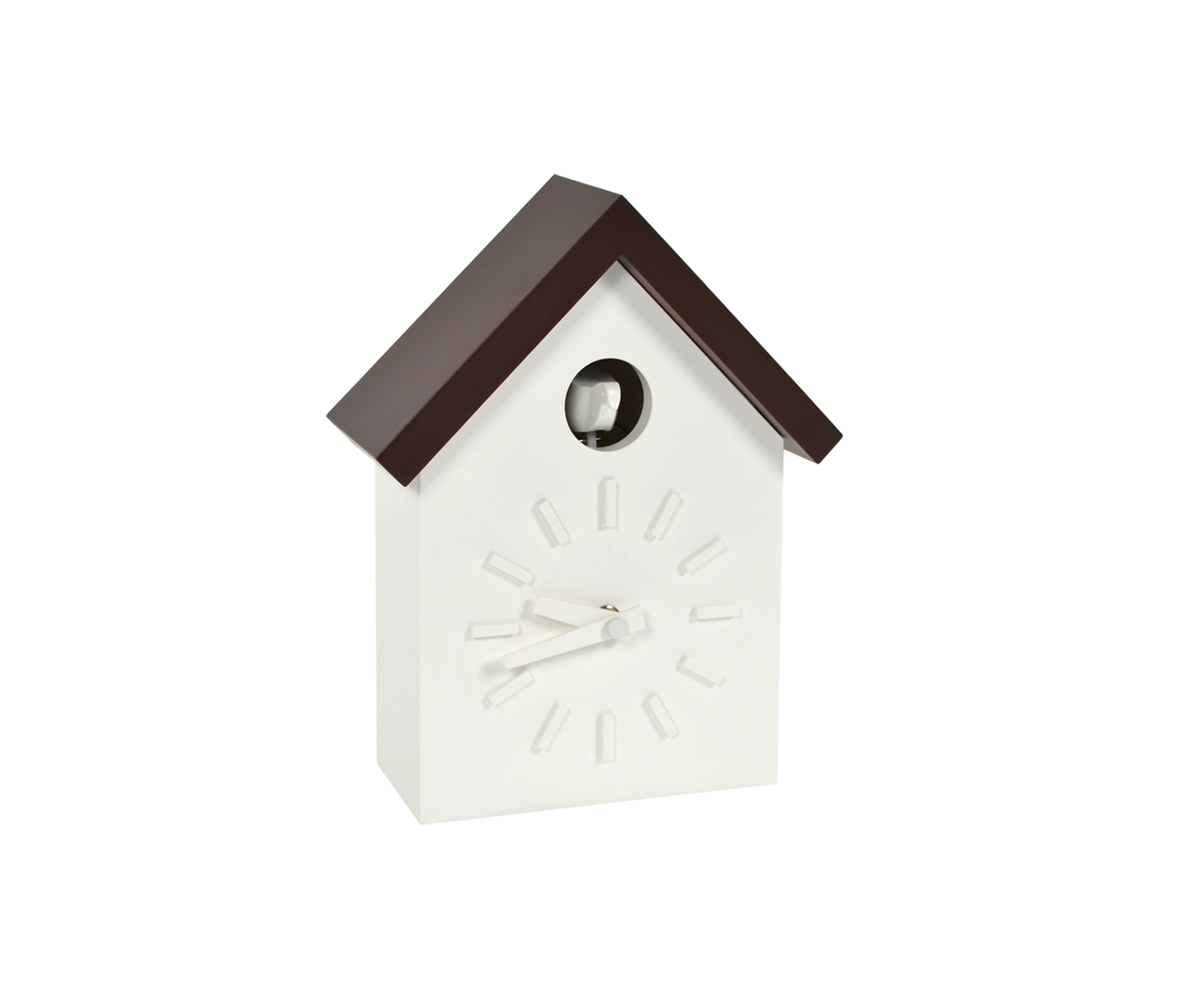 日本设计师福川忠雄(NaotoFuasawa)为马吉斯(Magis)提供了一种对传统的当代转折。巧妙地剥去装饰,木制齿轮,吊坠和链条,这决定了传统的黑森林布谷鸟钟的外观,福川在它的位置留下干净的线条,标准注射成型的ABS和电池动力。古钟是对传统、华丽的黑森林布谷鸟钟的简约诠释.一个简单的白色房子,有一个色彩鲜艳的屋顶,为一只小而抽象的鸟儿提供了栖身之所。白色铜钟-有一个屋顶白色,橙色或绿色-将在任何环境中增加幽默。