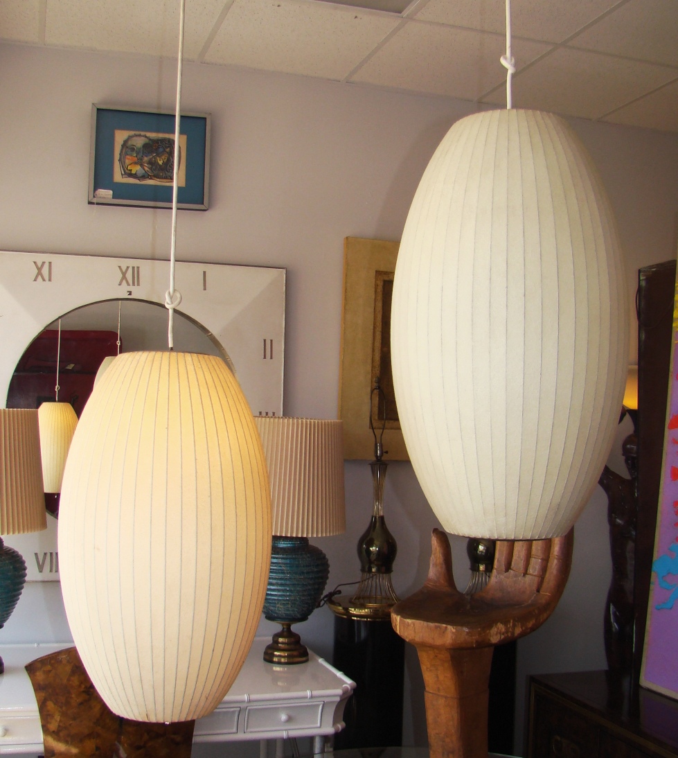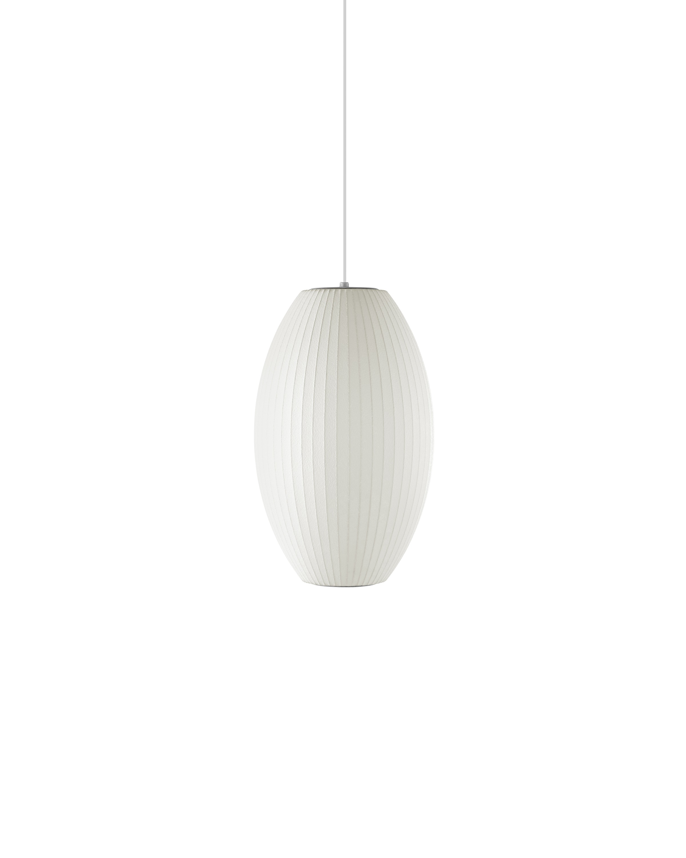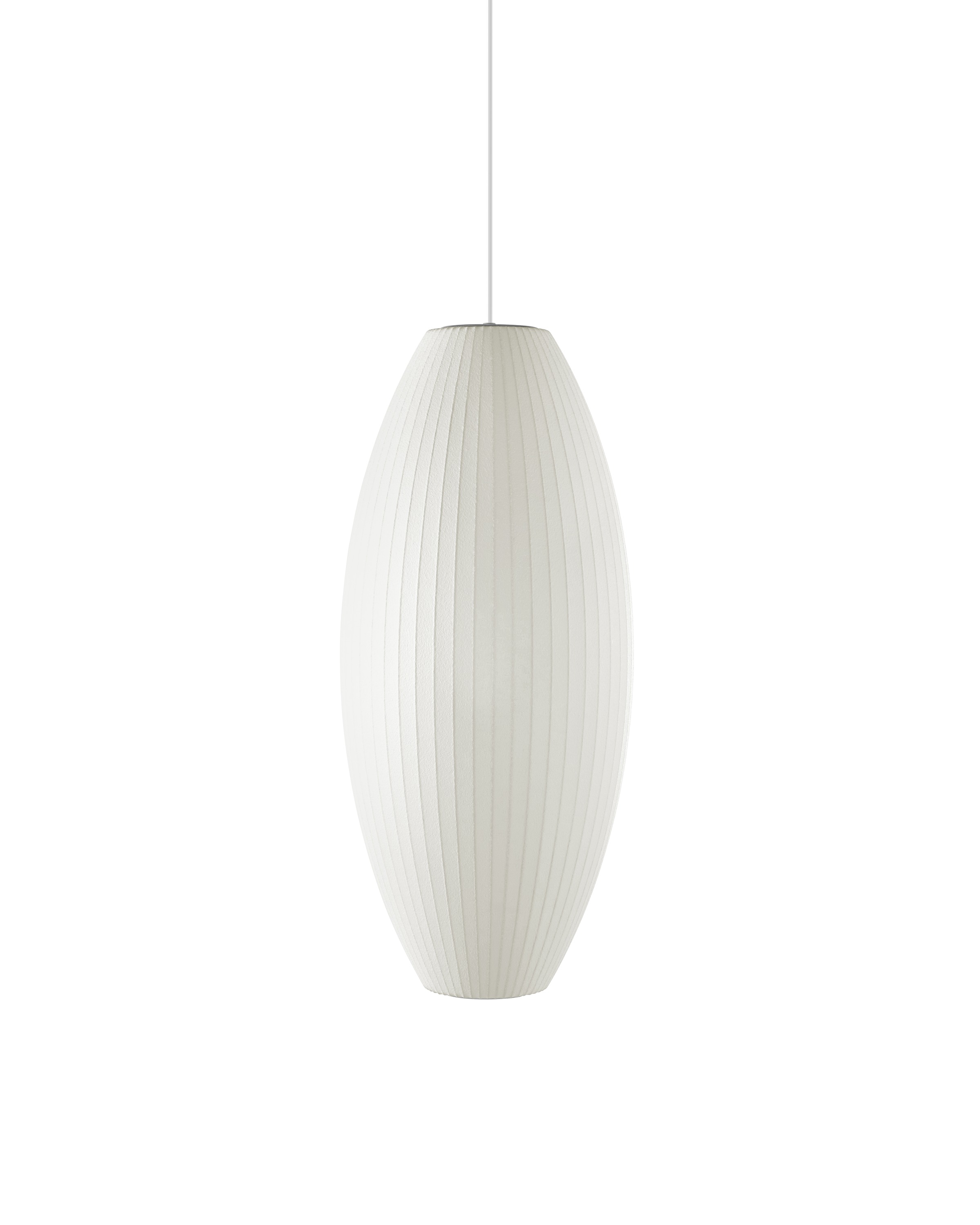 Nelson Cigar Bubble Pendant雪茄形气泡吊灯可以通过吊线板和6英寸长的吊绳悬挂在天花板上,散发出柔和均匀的光线。有小号、中号、大号和加大号几种不同规格。这些灯具最初生产于1952年,当时Nelson看到一组配有精心制作的丝质灯罩的瑞典吊灯,由此触发灵感。然而,吊灯的价格实在让人望而却步。Nelson决定设计制作自己的灯组,并且想出了用透明塑材代替真丝的创新工艺,使其能拥有更实惠的价格。