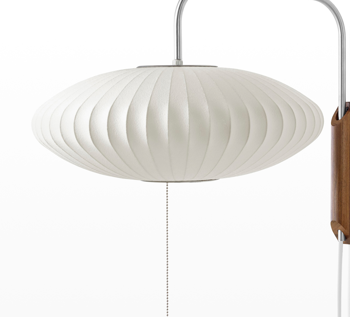 Nelson Bubble Lamps是各种球形轮廓的灯具,可发出柔和,均匀的光线。 Nelson Saucer Wall Sconce配有坚固的胡桃木壁挂式和钢制臂,以及12英尺的插入式电源线。 它的设计允许人们从左到右,上下调整壁灯,而无需将其重新定位在墙上。 乔治·尼尔森于1952年首次设计了泡泡灯,当时他遇到了一个他希望为办公室购买的瑞典吊灯。 他受到昂贵的价格的挑战,并决定自己做。 结果是一系列具有元素,球形形状的灯,如圆形苹果,细长雪茄和形状梨等。