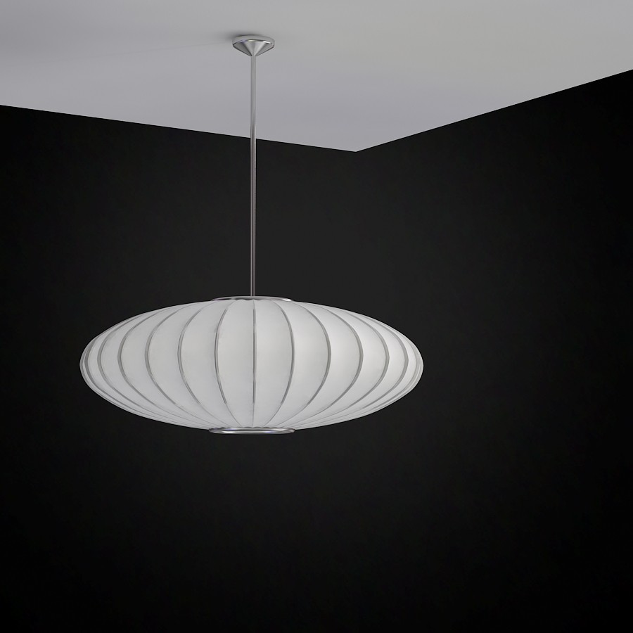 Nelson气泡灯是一组形形色色、具有球状轮廓的灯具,能散发出均匀柔和的光线。Nelson Saucer Bubble Pendant杯托型气泡吊灯宽大的形状及其不锈钢的下层结构能给人带来柔和流动的线条感,造型可爱,光线宜人,适合任何室内风格。本款吊灯有小号、中号、大号和加大号几种不同规格。George Nelson于1952年设计了这个系列的灯具,当时他偶然发现了一款瑞典吊灯,打算买回去放到自己办公室里使用。但那款吊灯高昂的价格让他犹豫了,却让他萌生出自己设计一个气泡灯系列的念头来。