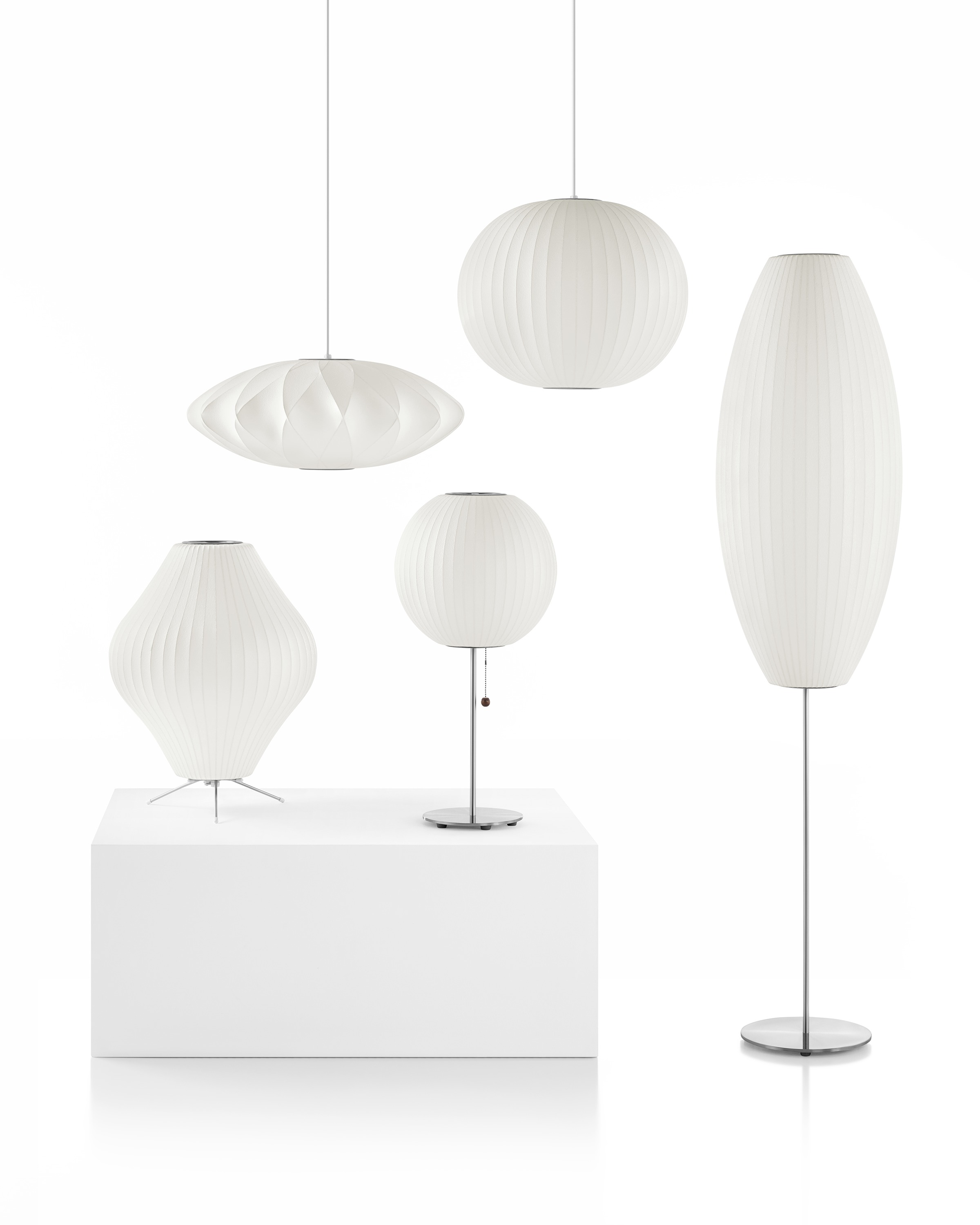 Nelson Ball莲花台灯采用轻质钢框架制成,完美圆润的球形底座设置在钢制底座上,有或没有胡桃木盖,并配有86英寸插入式线。 带有实心胡桃木末端的拉链提供了打开和关闭灯泡的便捷方式。 1952年,尼尔森对一套瑞典吊灯印象深刻,这些吊灯采用丝绸覆盖物制成。 他们高昂的价格促使尼尔森以一种让他们更实惠的方式设计自己的价格。 结果是一系列具有元素,球形形状的灯,如圆形苹果,细长雪茄和形状梨等。