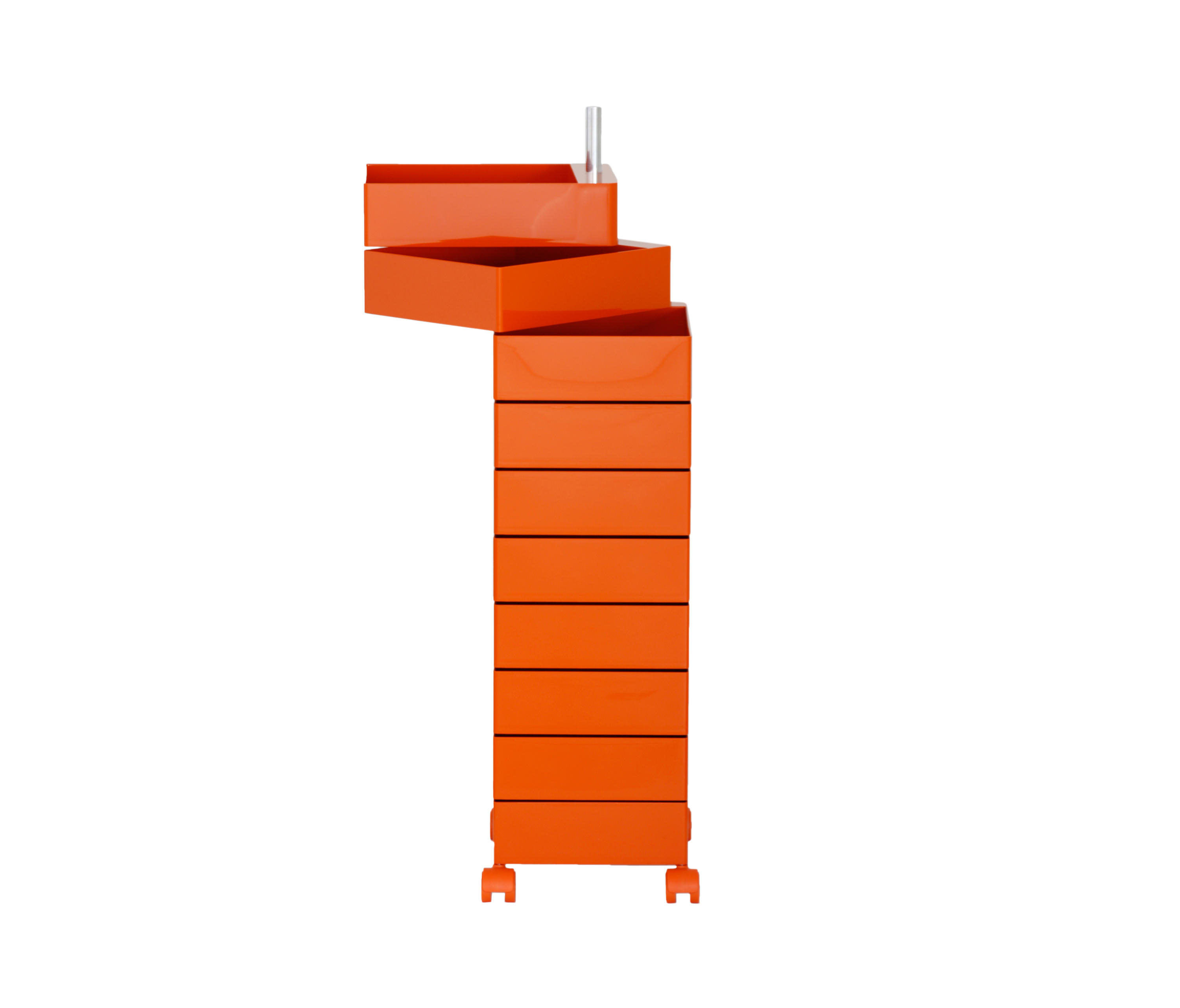 设计师康士坦丁.葛切奇以逻辑设计著称。他的360°集装箱设计是一个完美的例子,它解决了如何保持抽屉的所有内容可访问的问题。它的铝杆作为一个枢轴点,允许每个抽屉独立旋转,以便您可以访问其全部内容或隐藏起来轻松。由光滑的ABS塑料制成,可用橙色、白色和黑色。