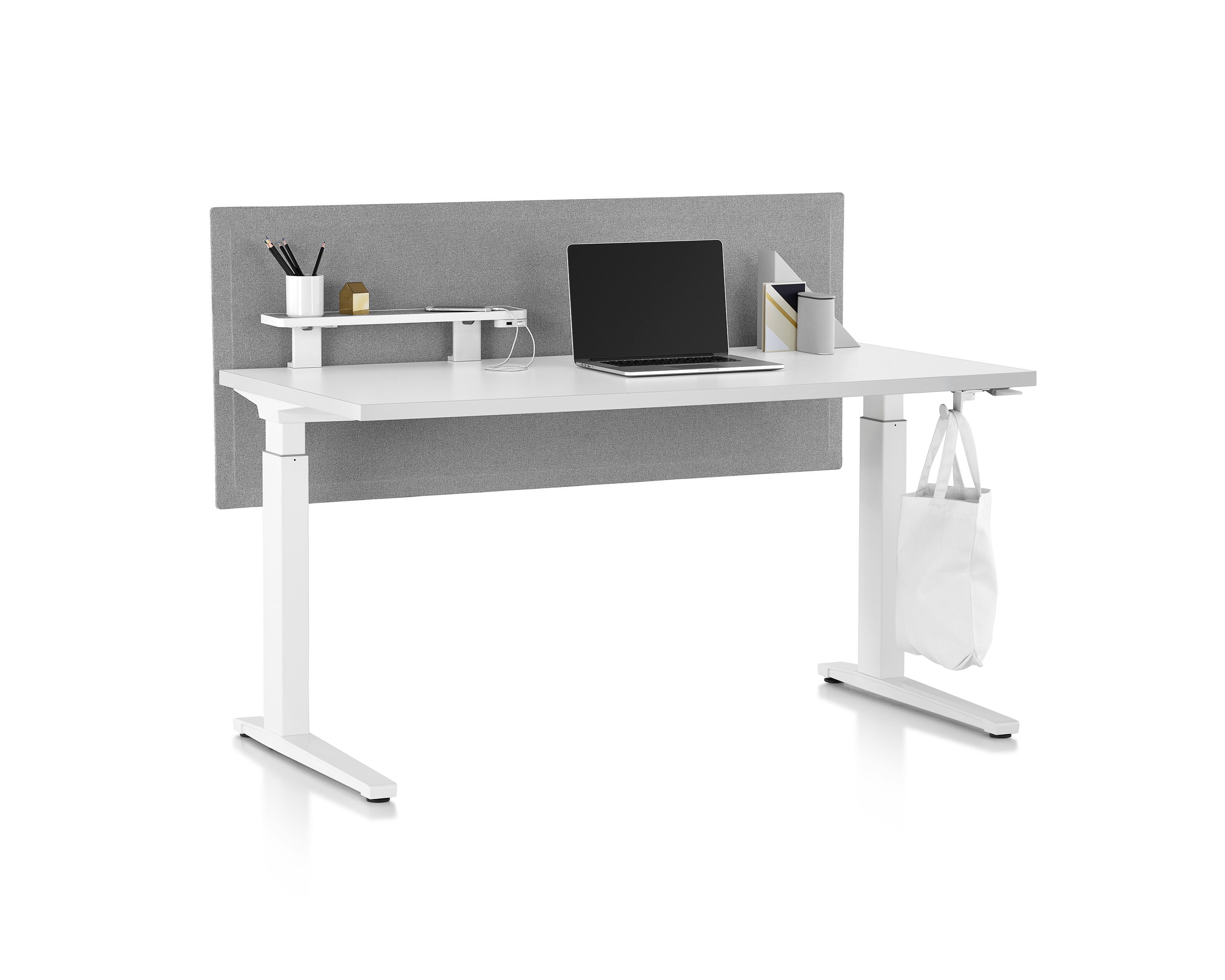 搁板安装在表面的后缘,提供额外的存储空间,无需使用工具即可重新布置。 可选背景使笔记本和参考文档可以垂直定向,从而释放桌面的表面。