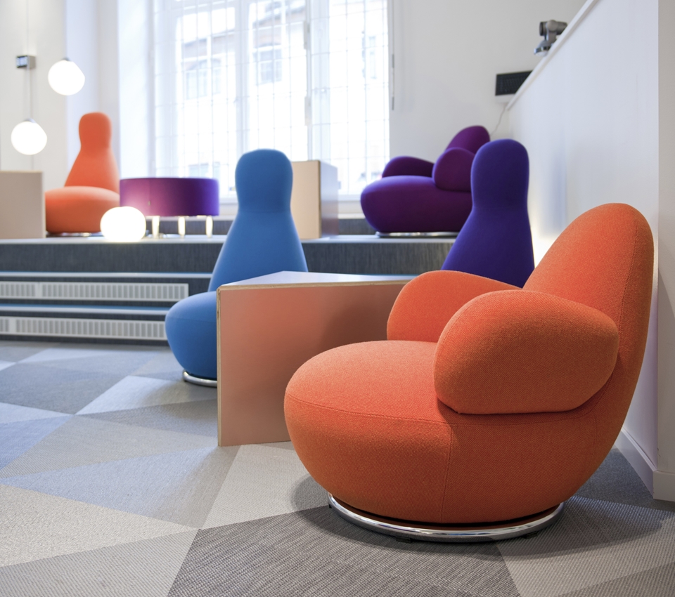 OPPO 是一个旋转的安乐椅栖息的房间,即使没有一个人。软形状邀请你无话进行交流。OPPO是在一个小的和一个大的版本,有或没有扶手。 OPPO的兴旺几乎无处不在; 机场,等候区,酒店,休闲会所,图书馆和其他许多地方。